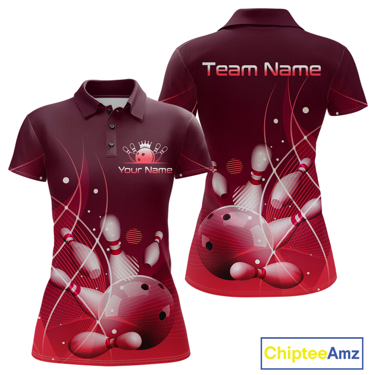 Custom Red Bowling Jersey for Women Bowling Uniform Bowling Team Shirts Polo & 1/4 Zip HNT168