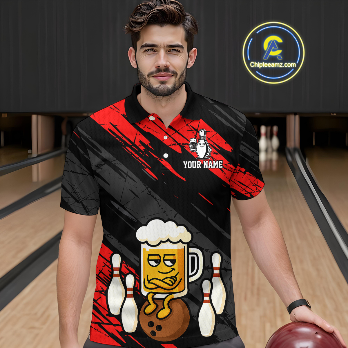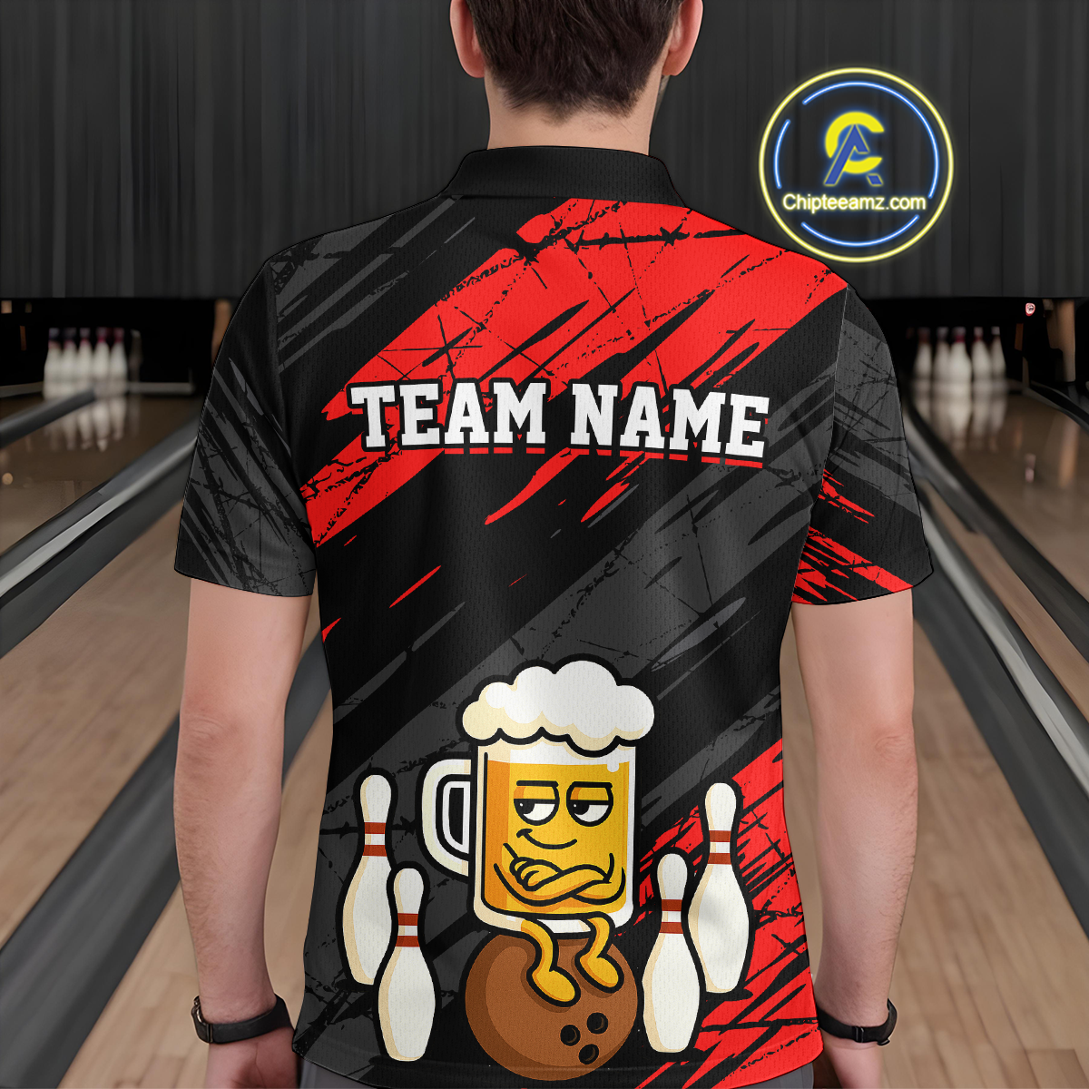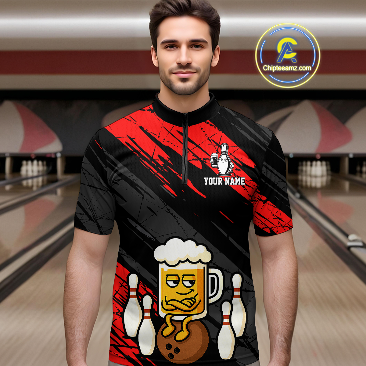 Custom Red Funny Beer Bowling Jersey for Men Bowling Uniform Polo & 1/4 Zip Bowling Team Shirts HNT107