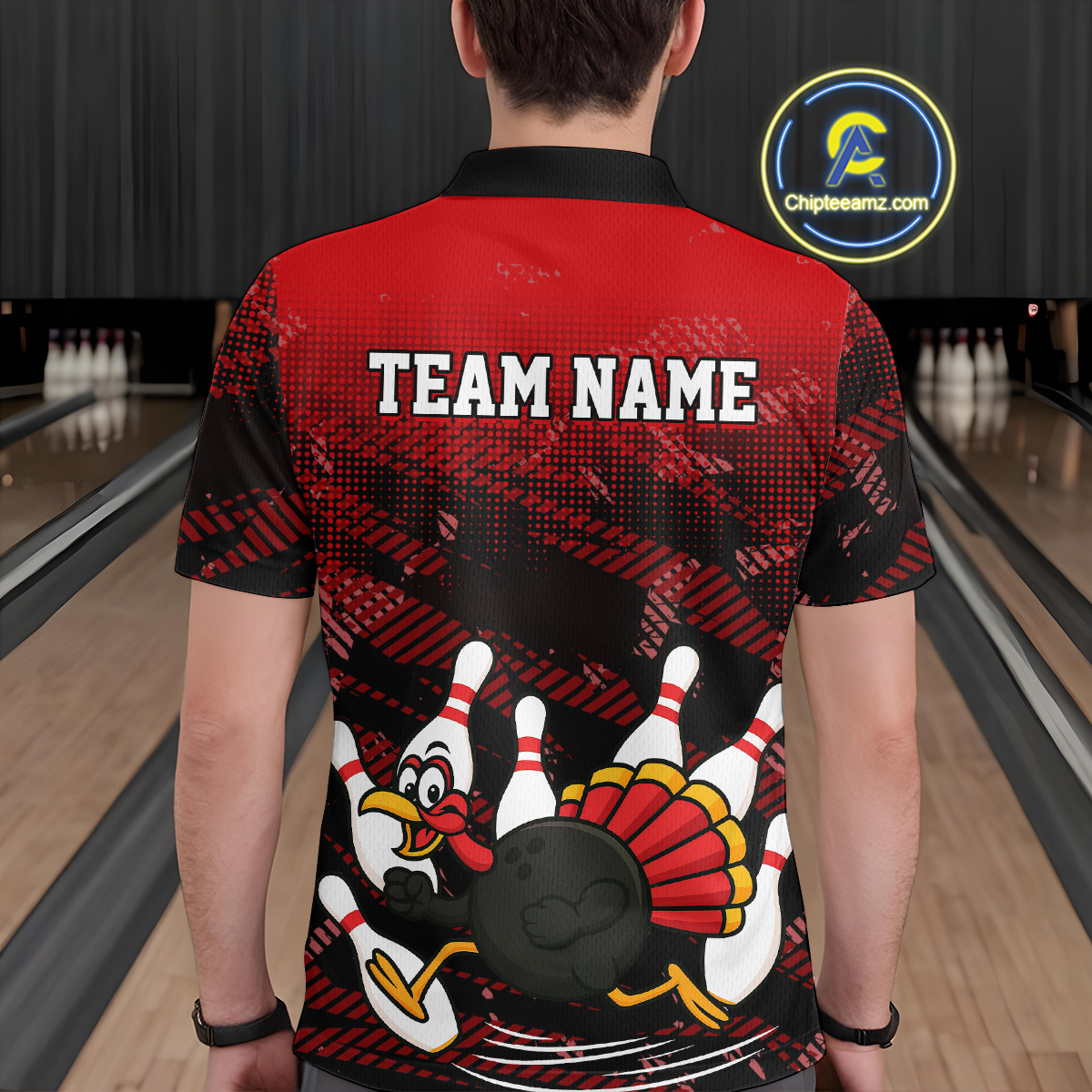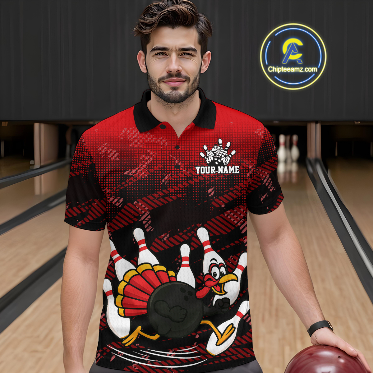 Custom Red Funny Turkey Bowling Jersey for Men Thanksgiving Bowling Team Shirts Polo & 1/4 Zip HNT125