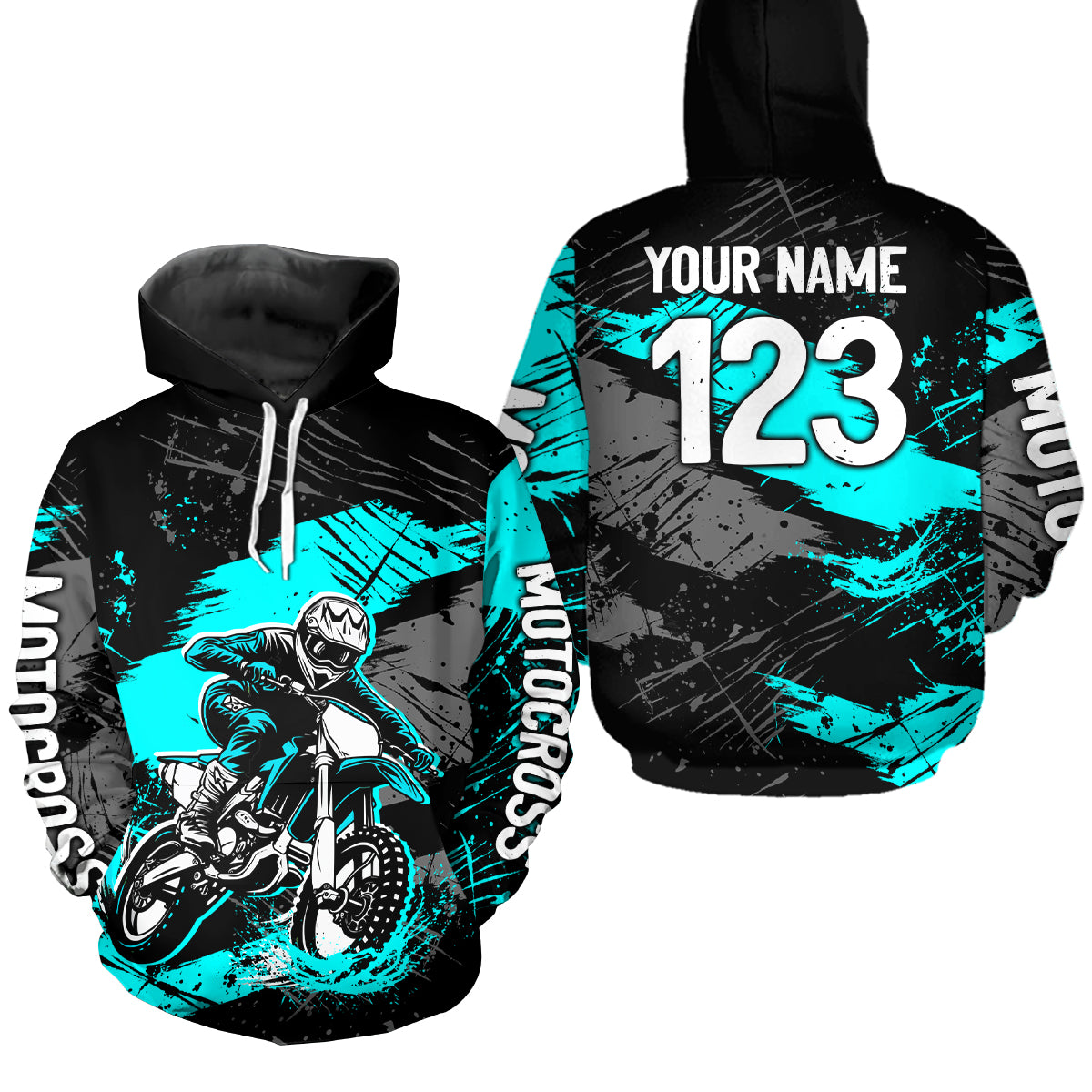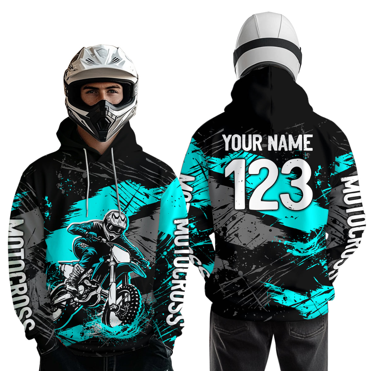 Custom Turquoise Dirt Bike Hoodie Motocross Sweatshirts for Kid Men Women Motorcycle Hoodie HOT39