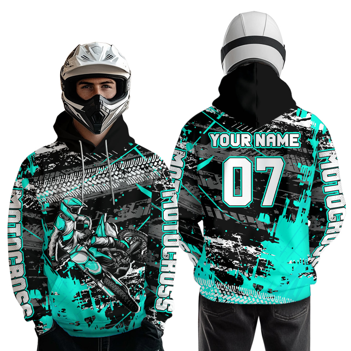 Custom Turquoise Racing Motocross Hoodie for Kid Men Women Dirt Bike Motorcycle Hoodie HOT40