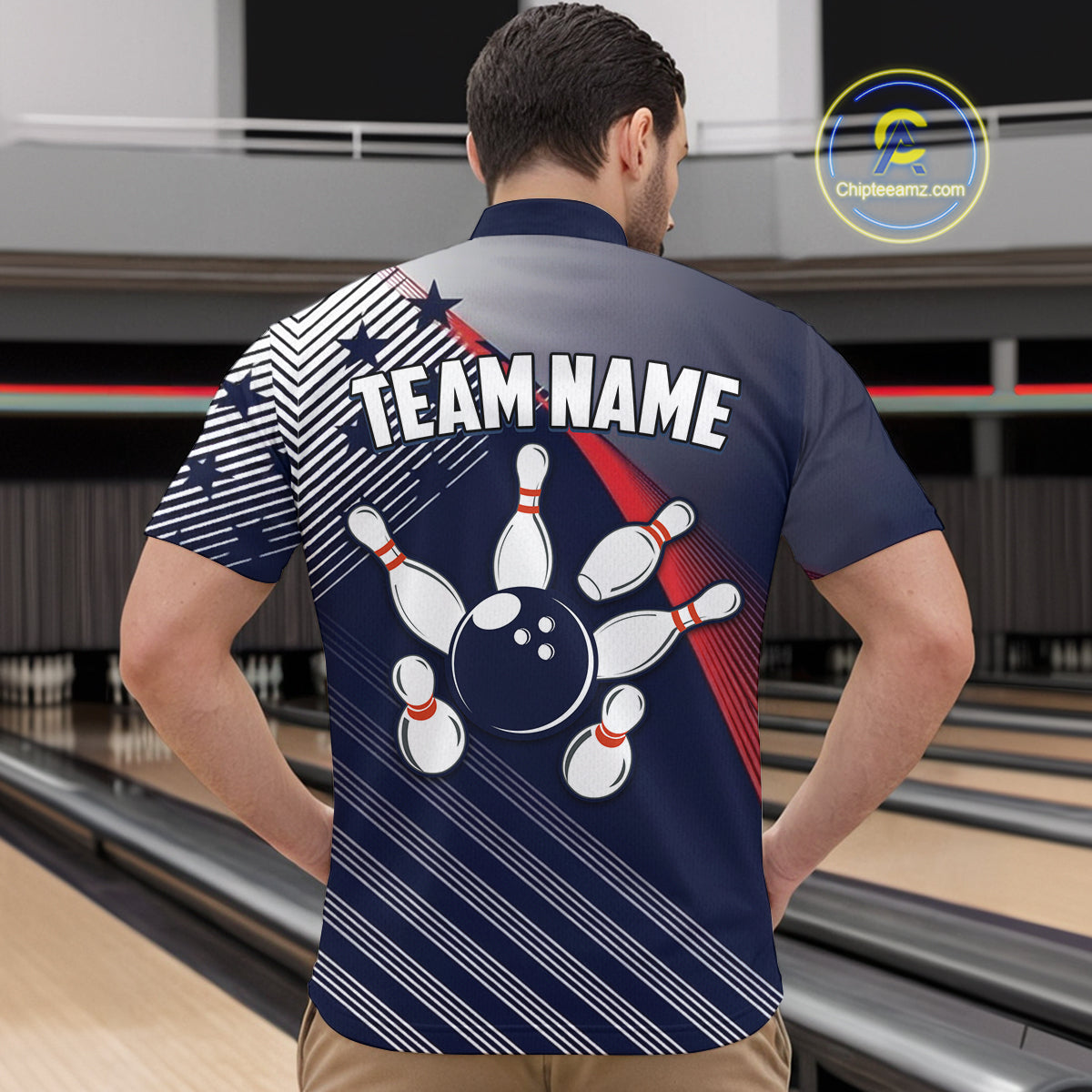 Custom US Flag Bowling Jersey for Men Bowling Team Shirts Bowling Uniform Polo & 1/4 Zip HNT165