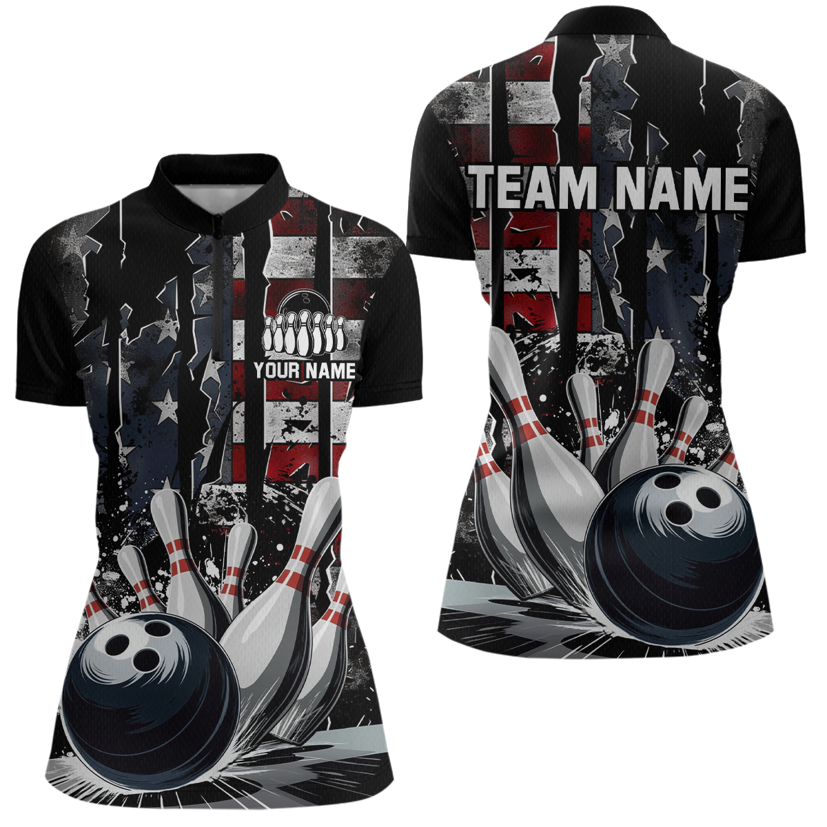 Custom Cracked US Flag Bowling Women Bowling Shirt Polo & Quarter-Zip Bowling Team Jerseys HNT86