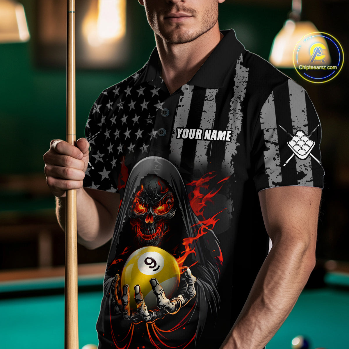 Custom US Skull 9 Ball Billiard Shirts for Men Billiard Team Shirts Billiard League Polo & 1/4 Zip NNT94