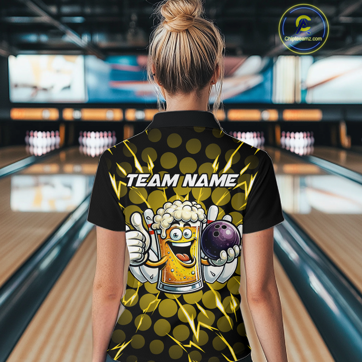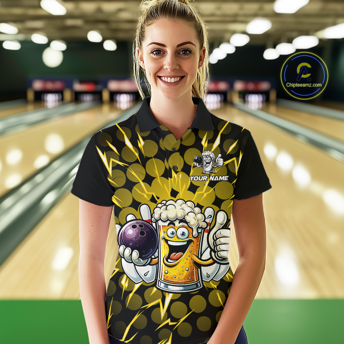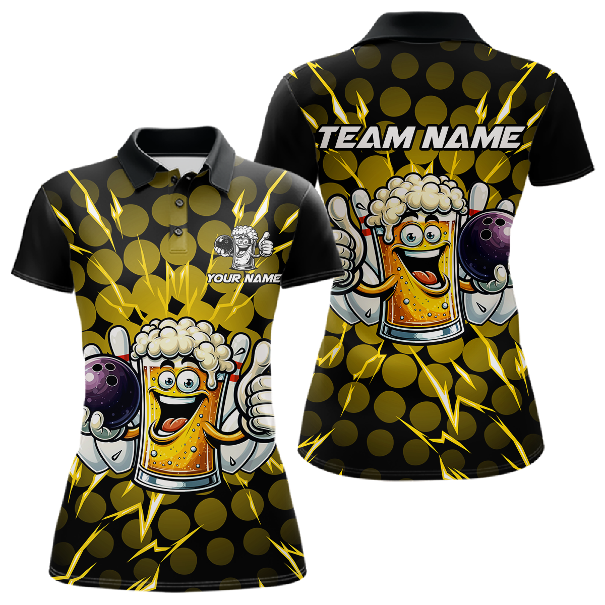 Custom Yellow Funny Beer Bowling Jersey for Women Bowling Team Shirts Polo & 1/4 Zip HNT187