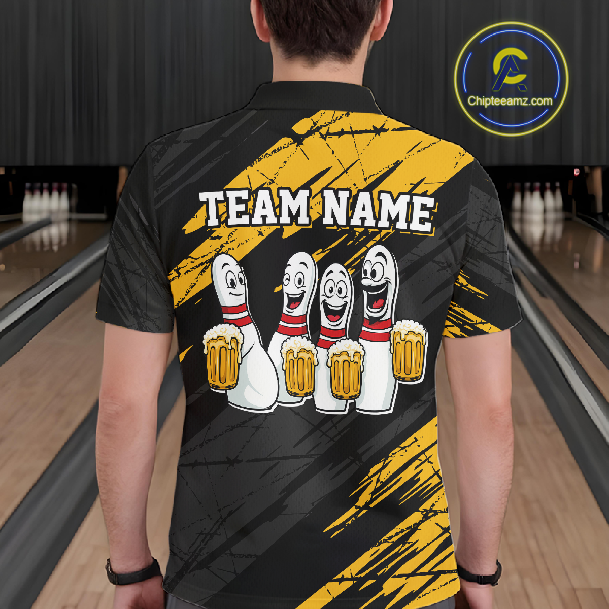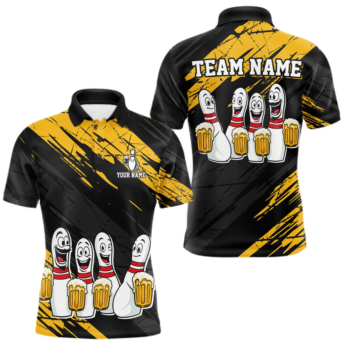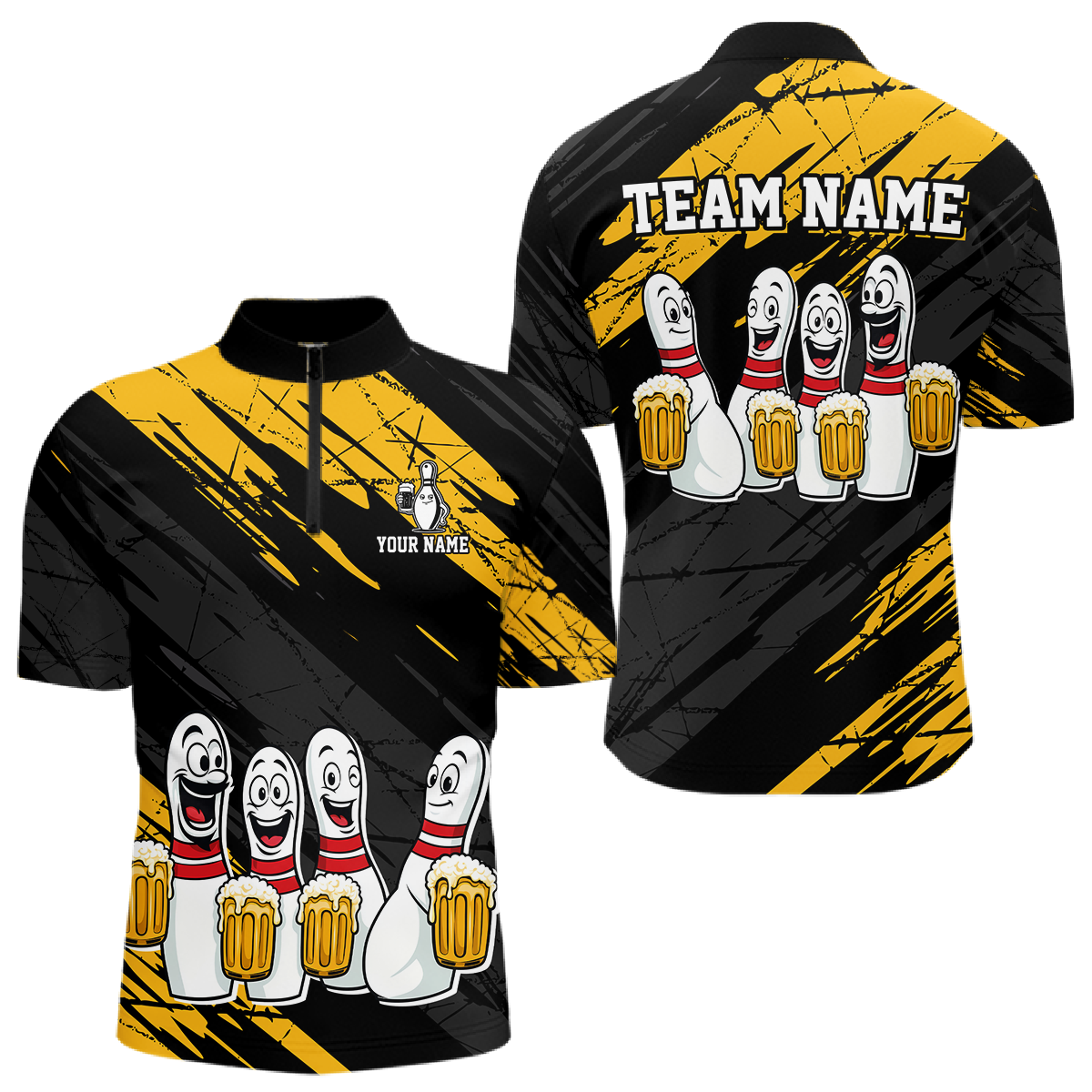 Custom Yellow Funny Bowling Tournament Jersey for Men Bowling Team Shirts Polo & 1/4 Zip HNT178