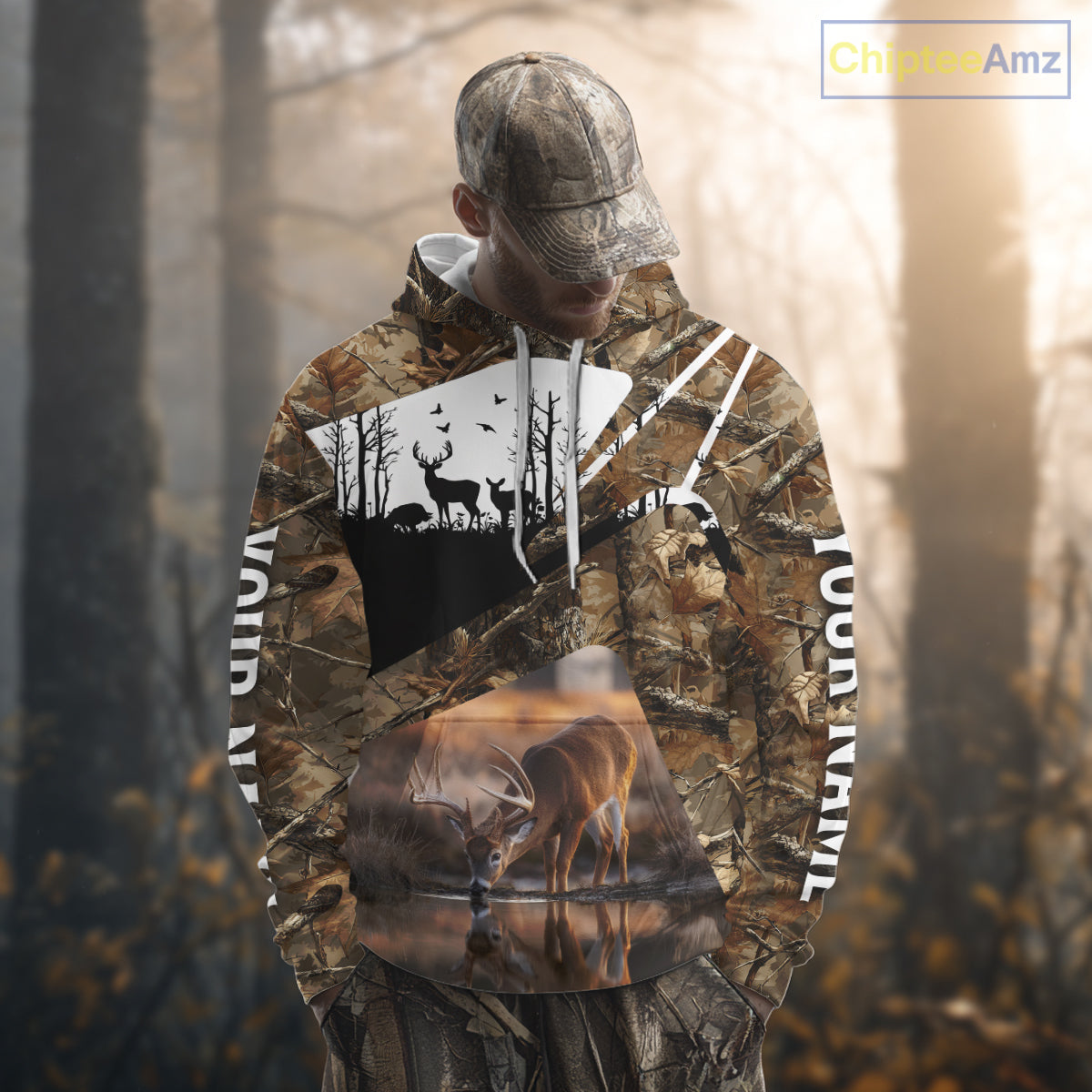 Deer Hunting 3D All Over Print Shirt Personalized Brown Fall Season Camo Hunting Clothes NHT204