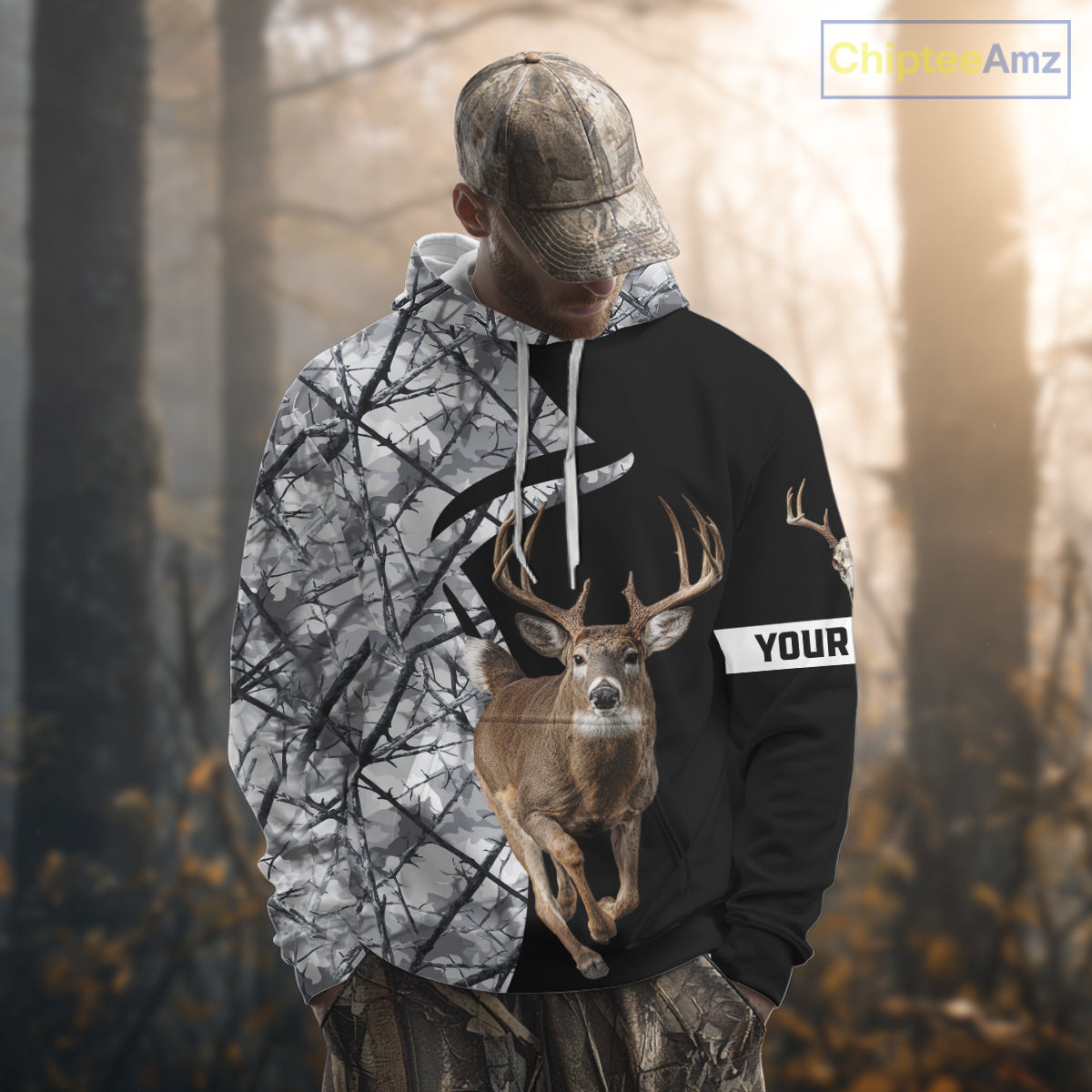Deer Hunting Big Game Black Camo Gray Custom Name 3D All Over Print Shirts, Hunting Gifts NHT205