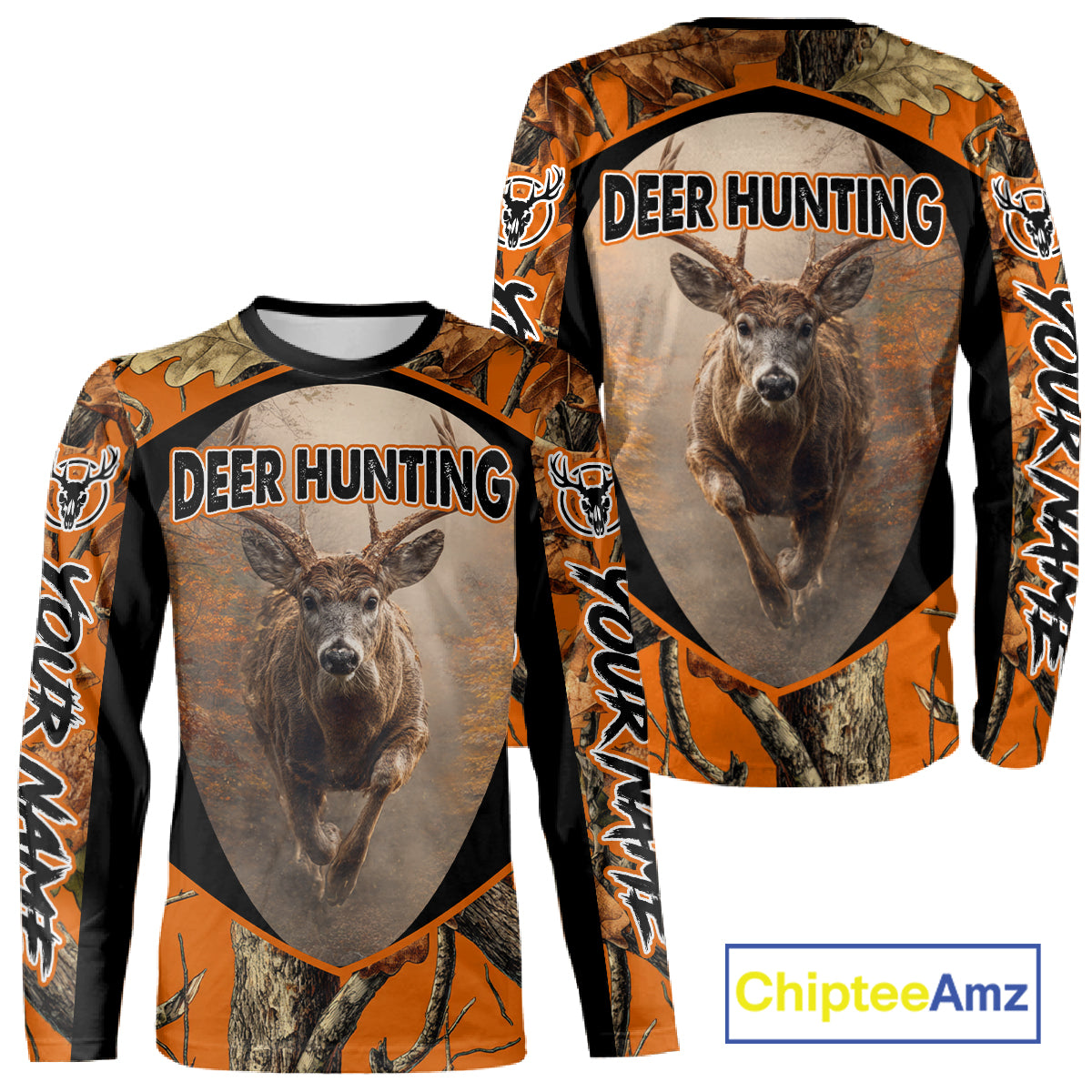 Deer Hunting Shirt Orange Camouflage Hoodie, Long Sleeve Custom Name For Men NBT245