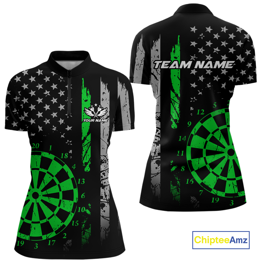 Custom Green US Flag Darts Shirt for Women Darts Team Jerseys Dart Tourament Polo & 1/4 Zip NNT116