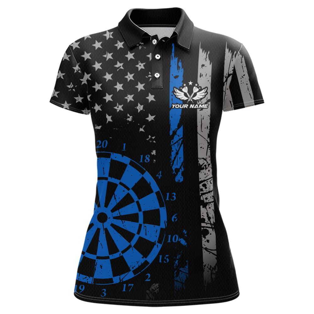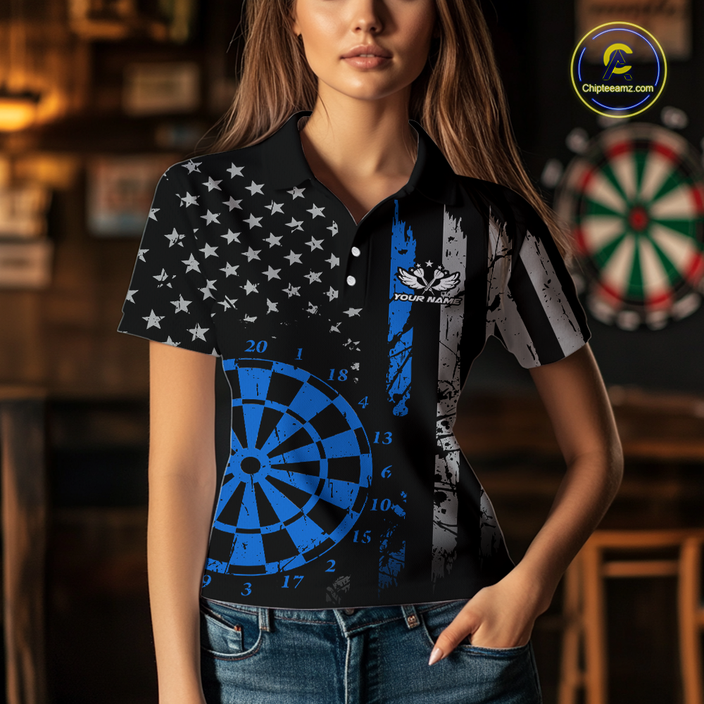 Custom Blue US Flag Darts Shirt for Women Darts Team Jerseys Dart Tourament Polo & 1/4 Zip NNT116