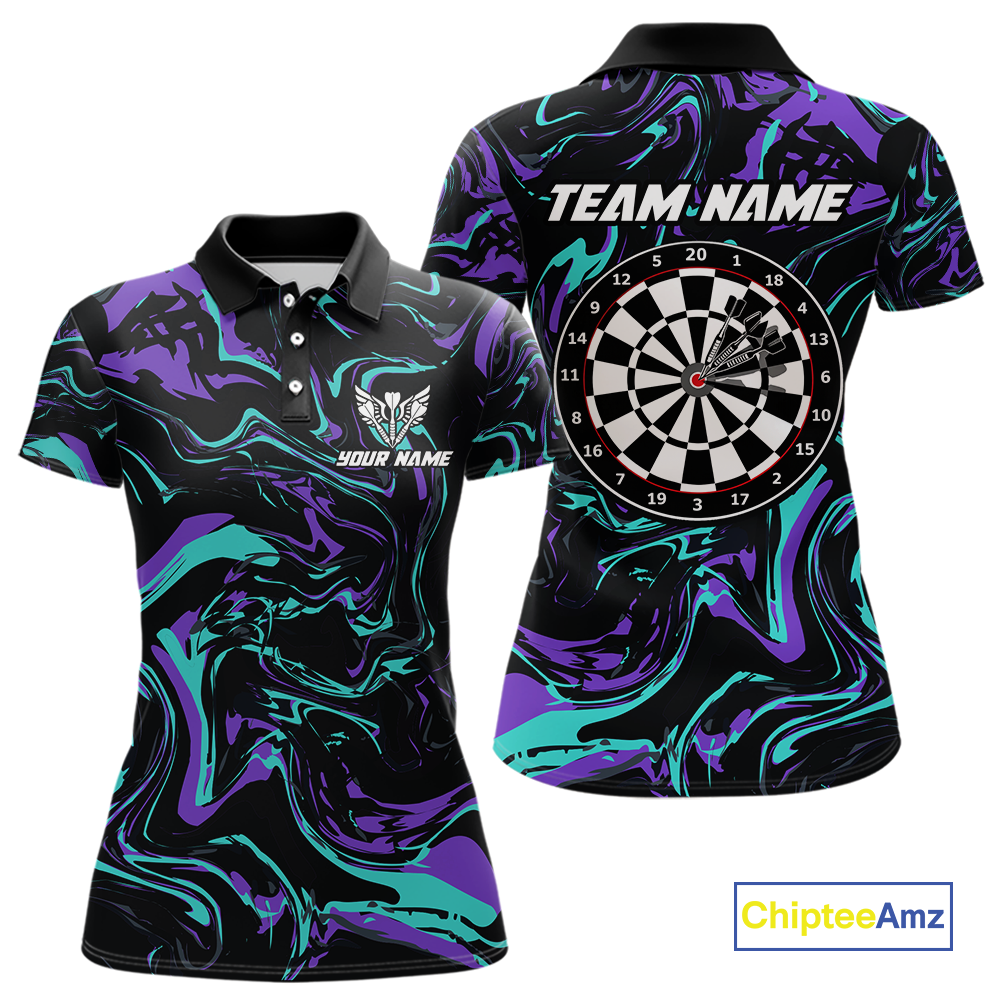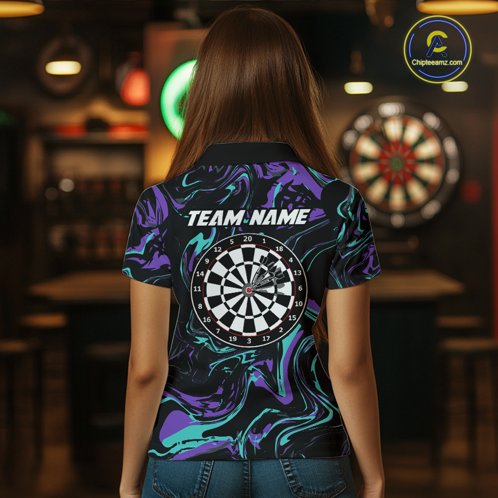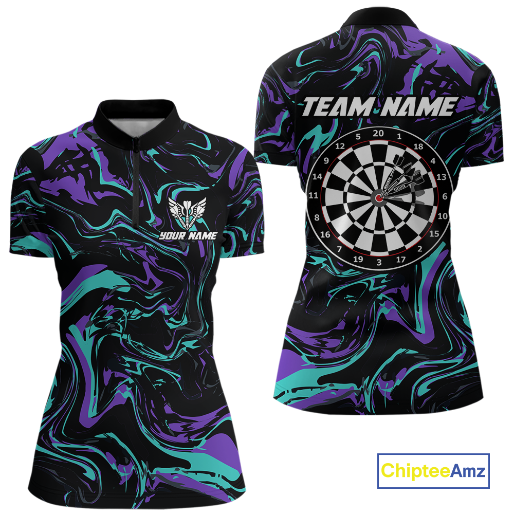 Purple-Turquoise Pattern Darts Team Jerseys Dart Shirts For Women Dart Tournament Polo & 1/4 Zip NNT119