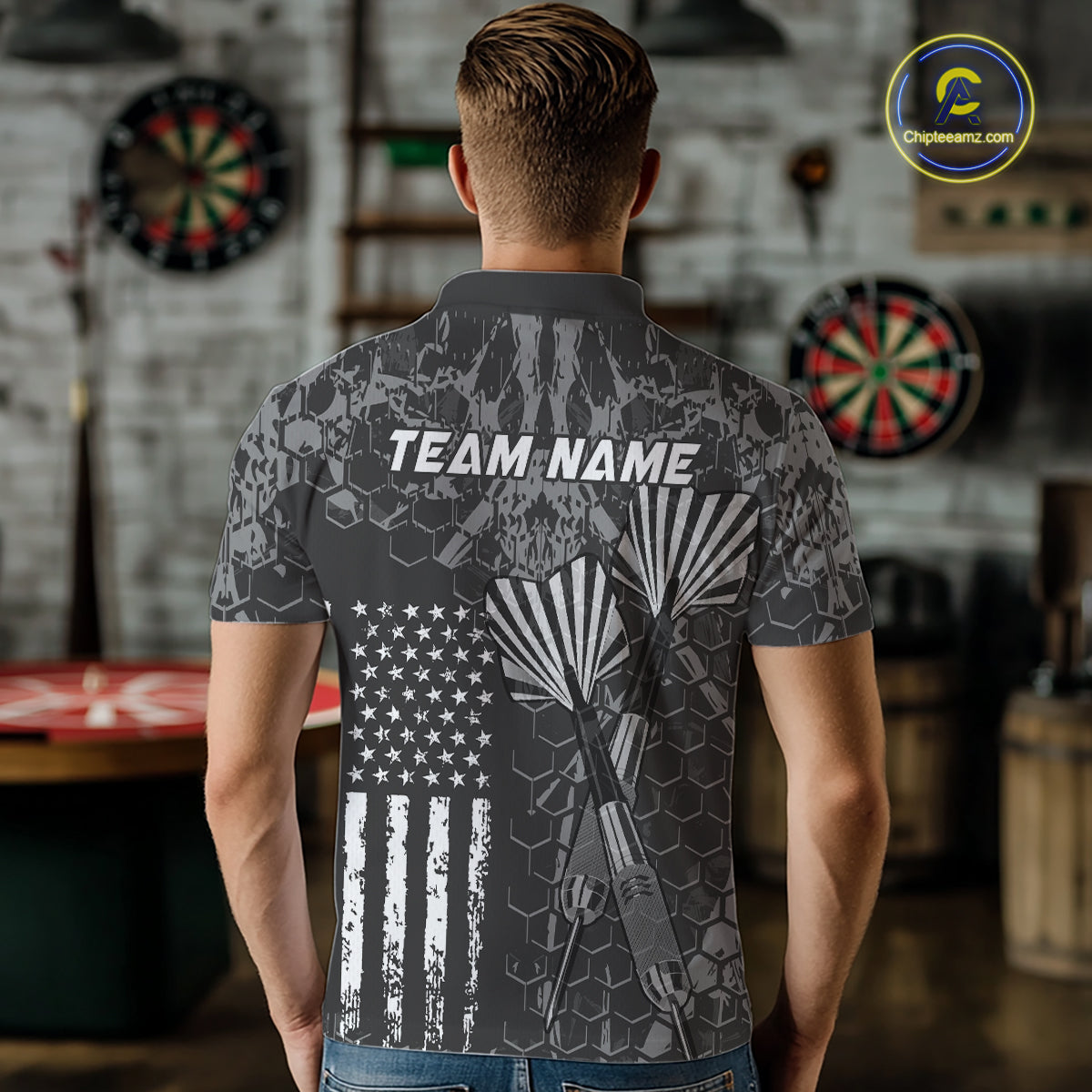 Custom US Flag Darts Shirt for Men Darts Team Jerseys Dart Tourament Polo & 1/4 Zip NNT113