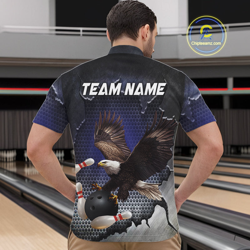 Eagle Bowling Polo, Quarter Zip Shirts for Men Custom Team Bowling jerseys, gift for bowlers | Blue NQS10972