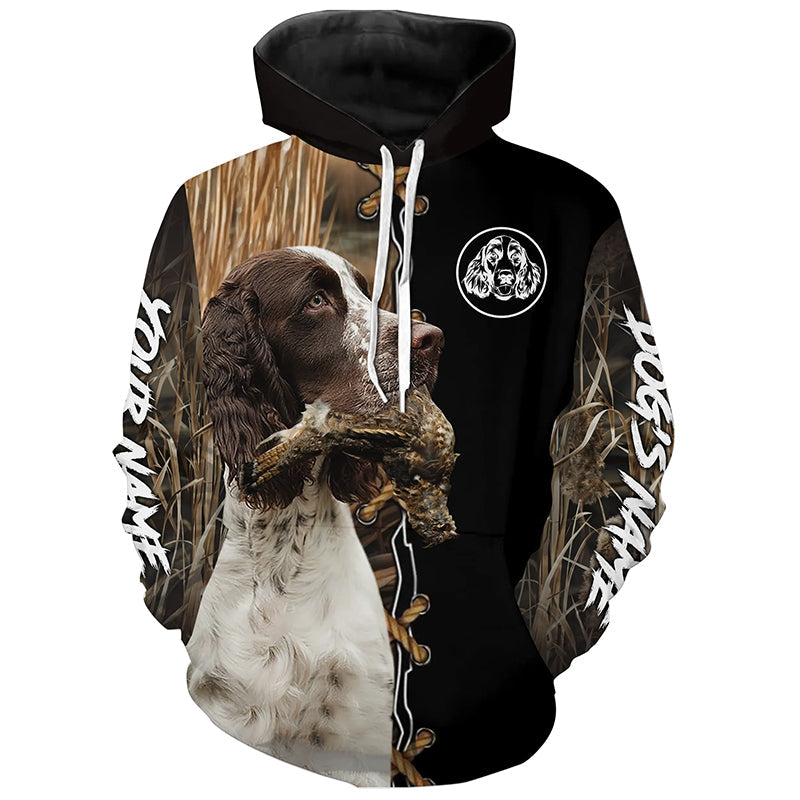 English Springer Spaniel Hunting Dog Custom Name Hoodie Shirt for Hunter FSD4689