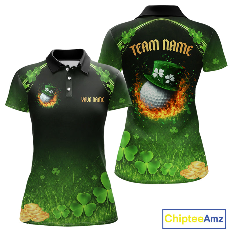 Flame golf ball green shamrock St Patrick's Day Women Golf Polo Shirt Custom lucky ladies golf attire NQS11413