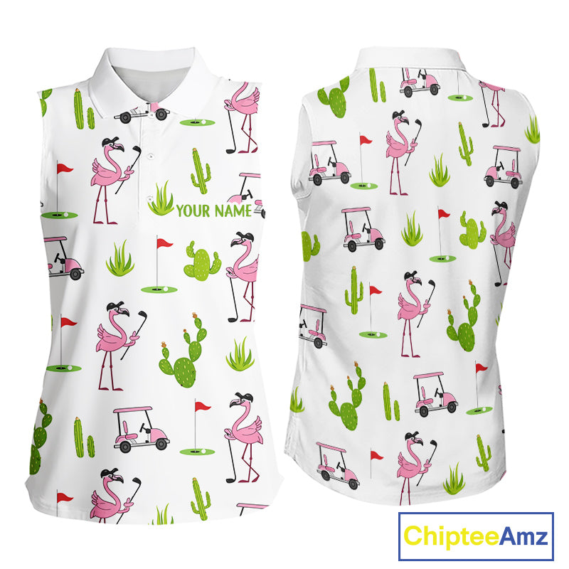 Flamingo Cactus Desert Pattern Womens Sleeveless Golf Polo Shirt Custom Cactus Golf Shirt NHN0150