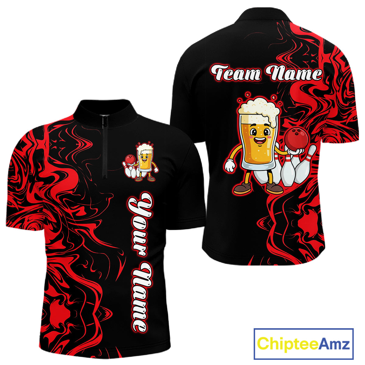 Funny Beer Bowling Shirts Team Women Men Custom Red Bowling Jersey for Bowler MBL250