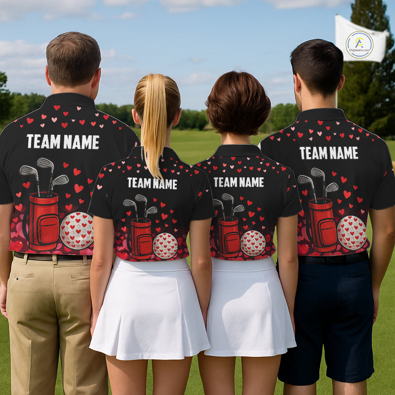 Funny Black and Red Heart Pattern Valentine Golf Shirts For Women Custom Valentine Golf Gifts For her NQS11229