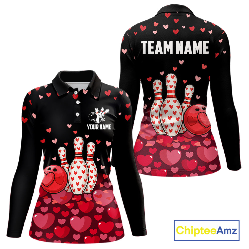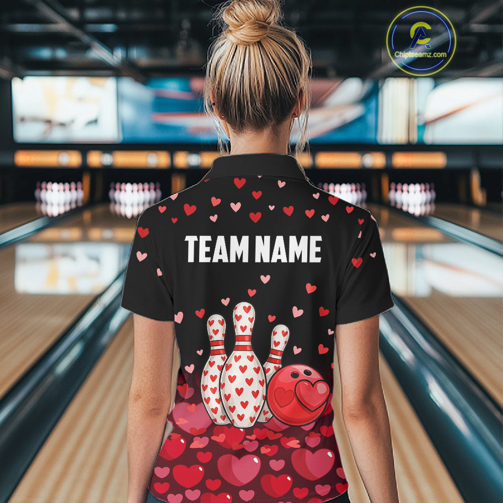 Funny Bowling Heart Pattern Valentine Bowling Shirts For Women Custom Bowling Gifts For her NQS11228