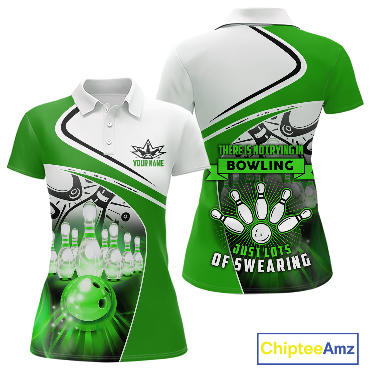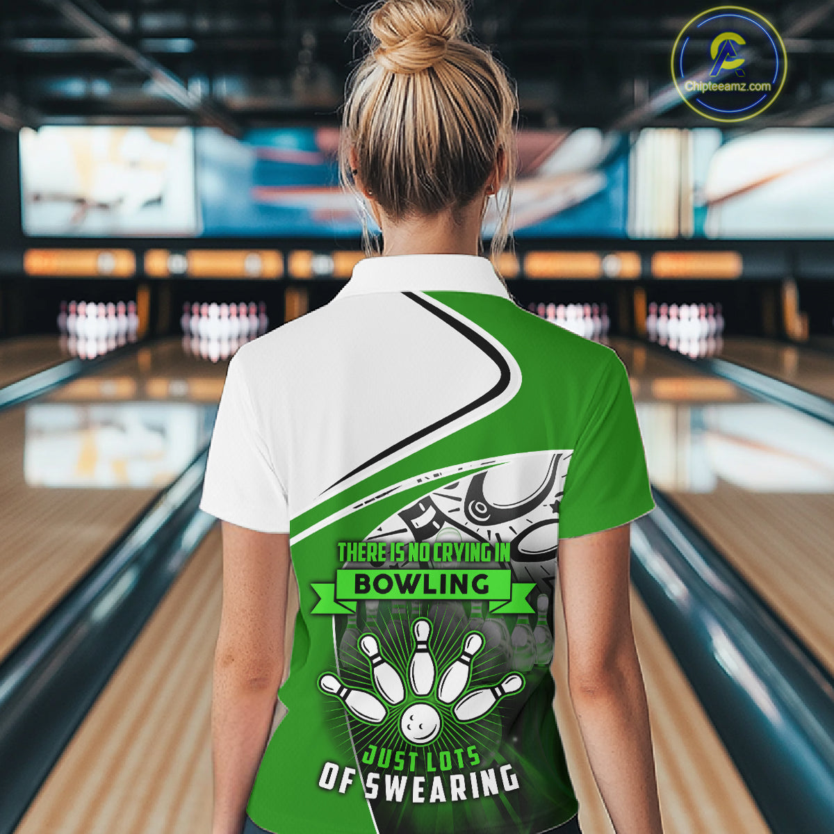 Funny Bowling Shirt For Women custom name There is no crying in bowling just lots of swearing | Green NQS11350