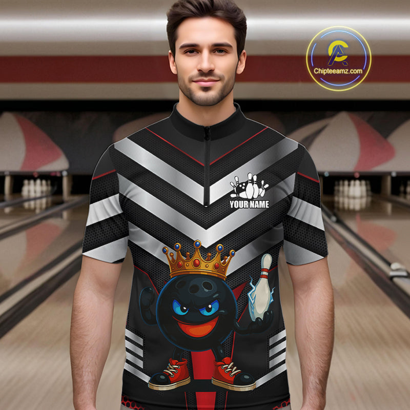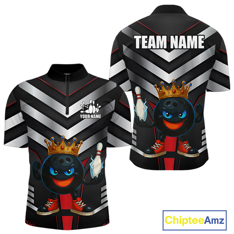 Funny Bowling Shirts Black and Silver Metal Team Bowling Polo, 1/4 Zip Shirts Custom bowling gifts NQS10942
