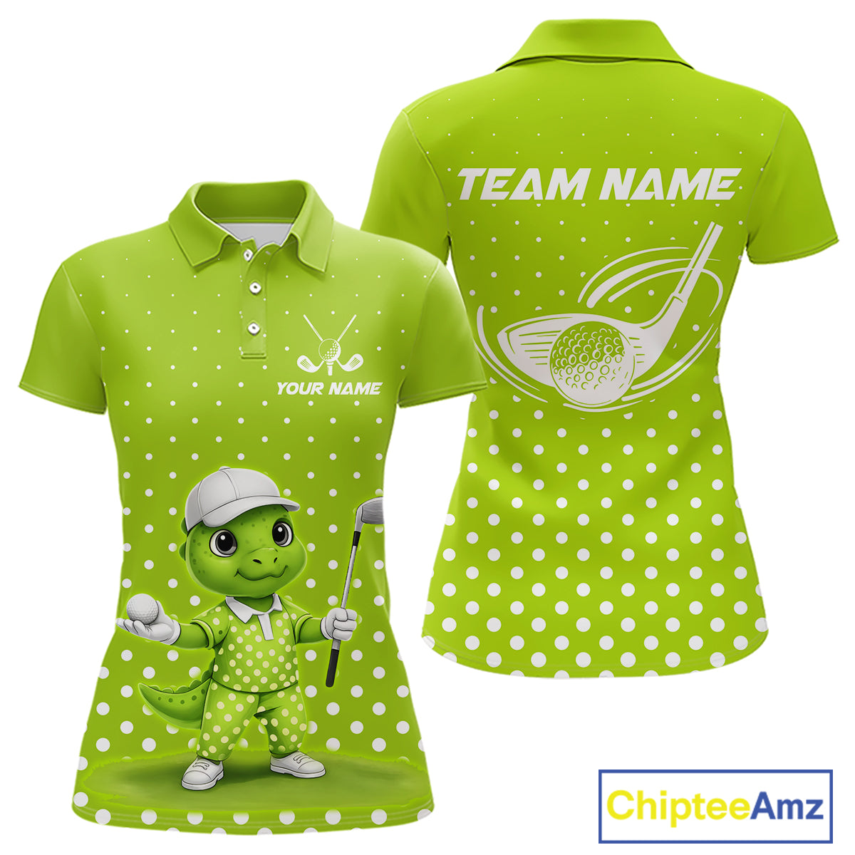 Funny Dinosaur Womens Golf Polo Shirt Custom Name Green Pattern Dinosaur Golf Shirts For Ladies NHN0100
