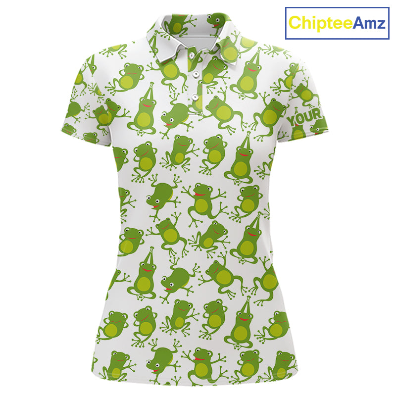 Funny Green Frog pattern Womens Golf polo shirts Custom golf attire for ladies, gift for golfers NQS11285
