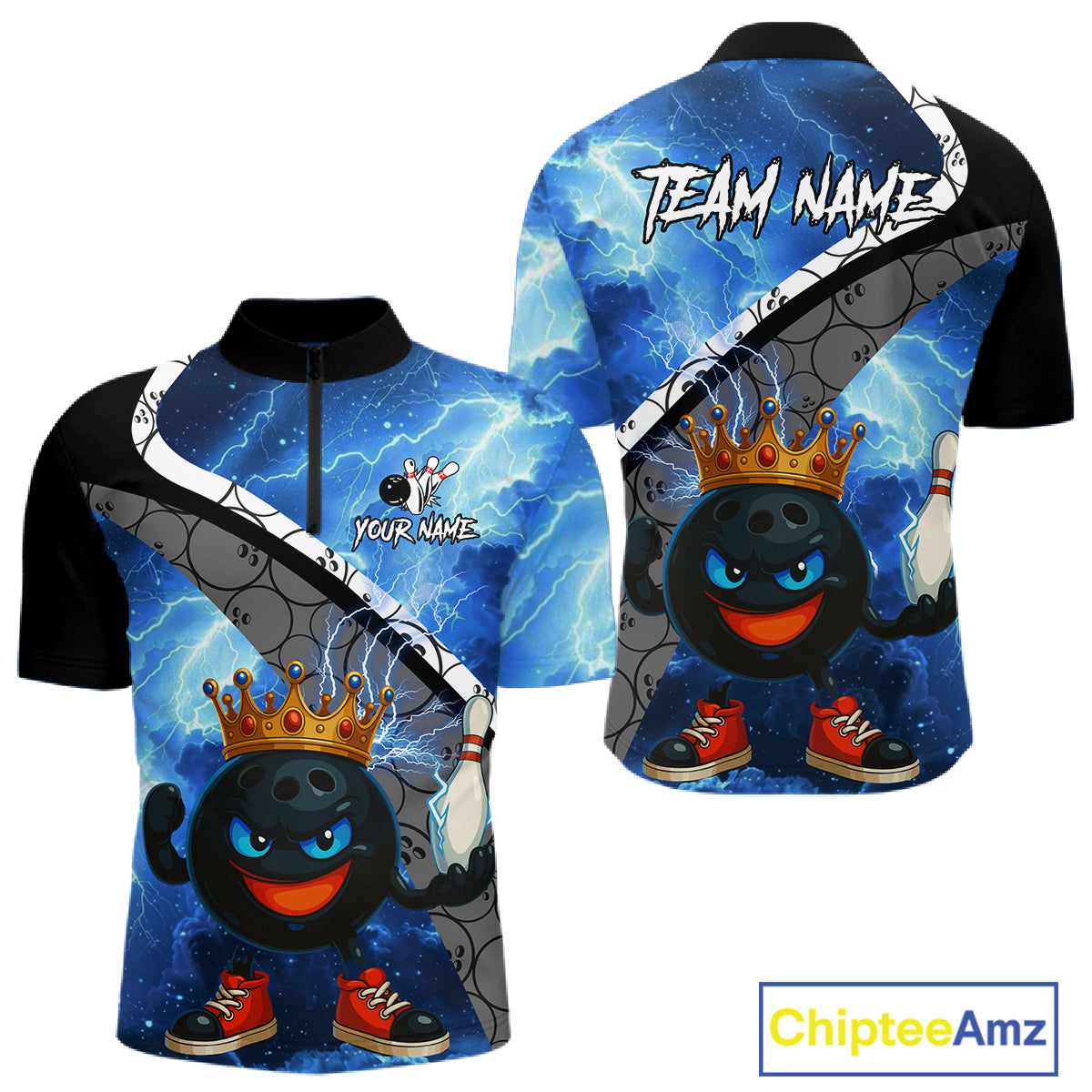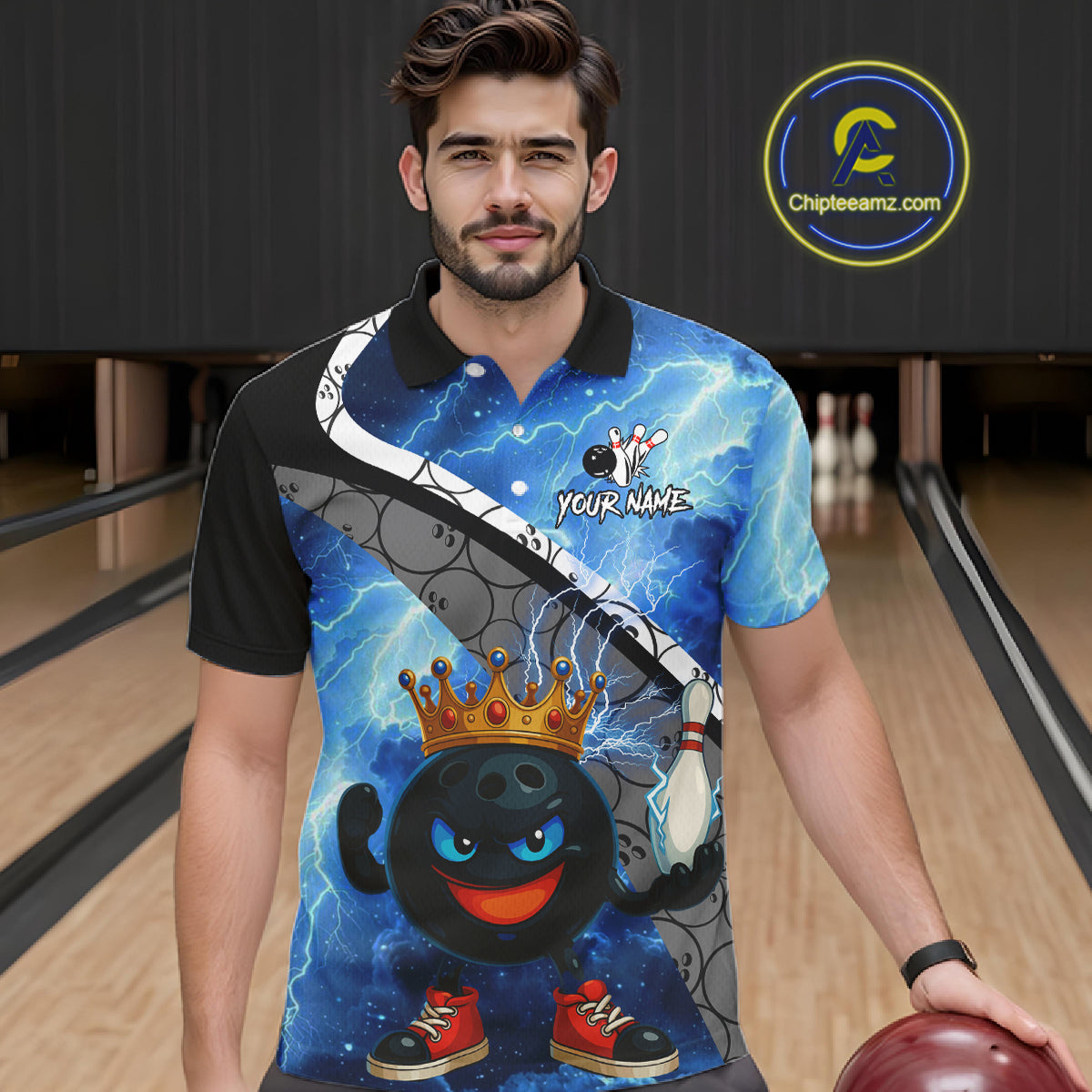 Funny King Crown Bowling Blue Lightning Thunder Bowling Shirts for Men Custom Bowling Team Jersey NQS10928