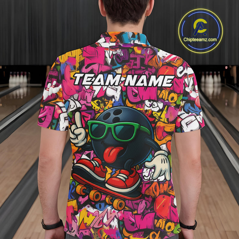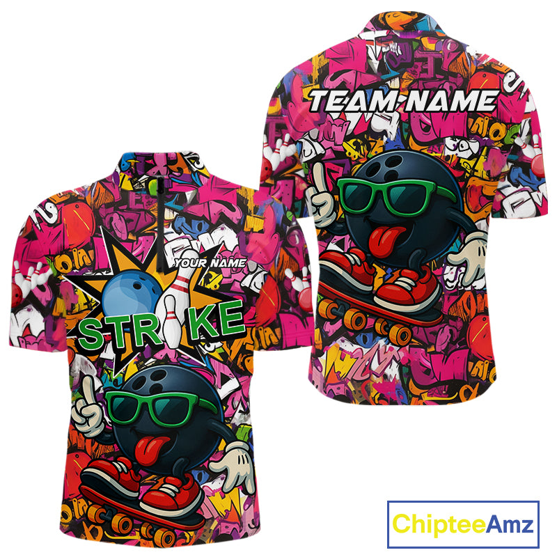Funny pink graffiti pattern Bowling Team Polo, 1/4 Zip Shirt For Men Custom Mens Bowling Jersey NQS10824