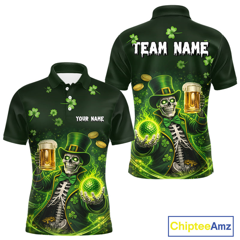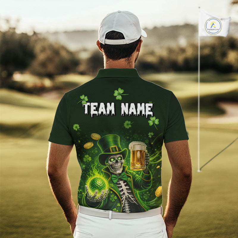 Funny Skull drink beer St Patrick's day Green shamrock Mens Golf Polo Shirts Custom mens golf apparel NQS11411