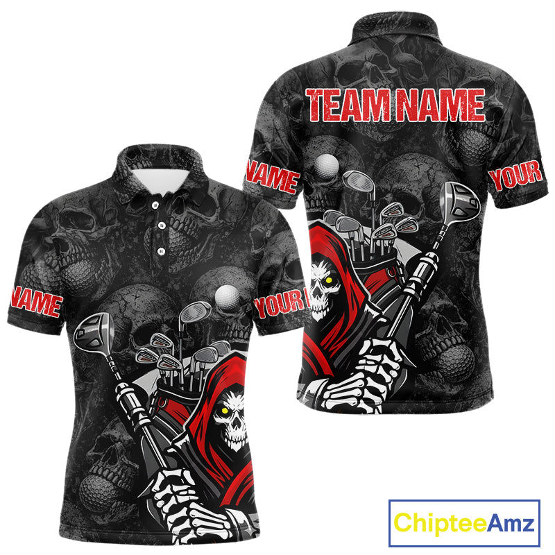 Funny Skull Mens Golf Polo Shirts Golf Ball Skull Pattern Custom Name Golf Apparel Personalized NHN0088