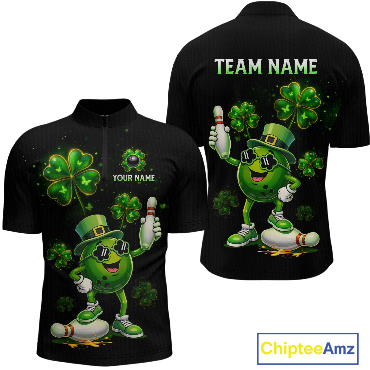 Funny St Patrick Day Bowling Bowling Jersey for Men Bowling Team Shirts Polo & 1/4 Zip HNT192