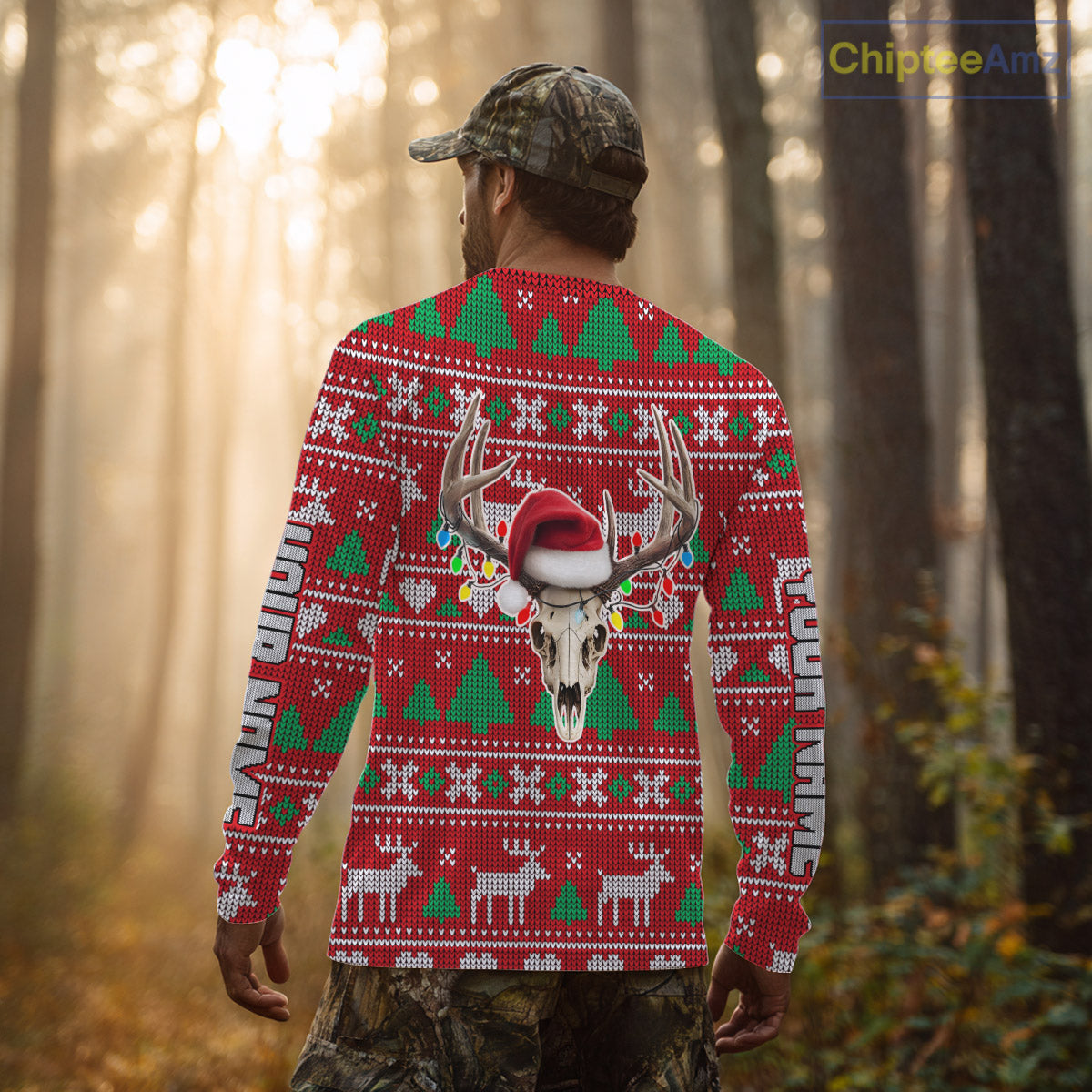 Funny Ugly Sweater Pattern Skull Deer Hunting Custom All Over Print Shirts NHT302