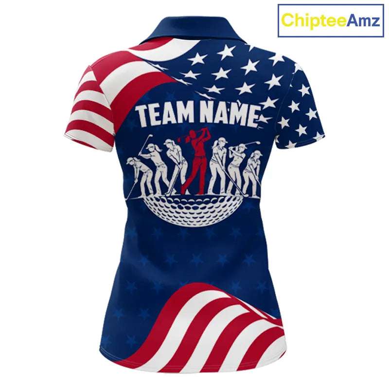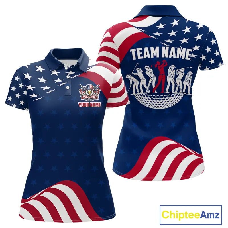 Funny Womens Golf Polo Shirt Custom Name American Flag Polo Shirt, 250 Years Of Freedom Patriotic Gift NHN0173