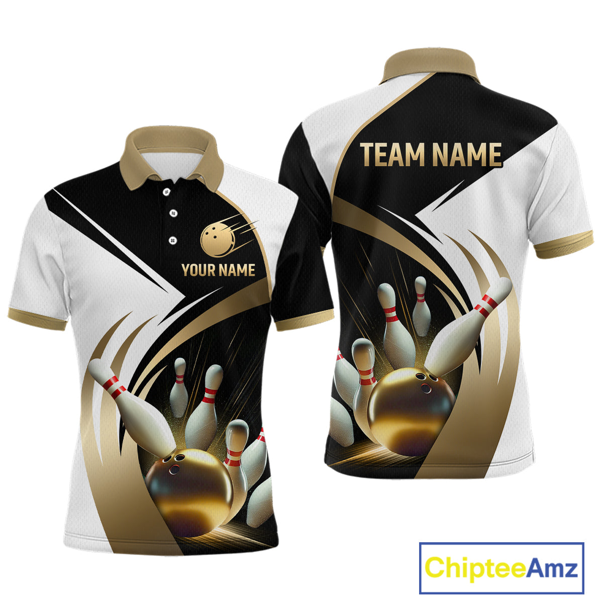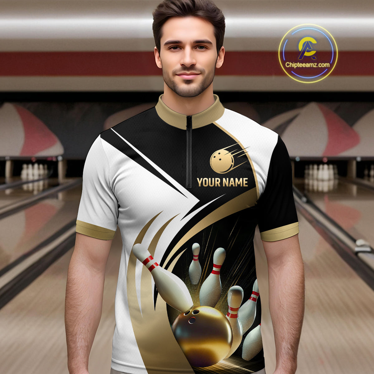 Gold Bowling Custom Men Bowling Shirt Polo & Quarter-Zip Bowling Team Jerseys HNT61