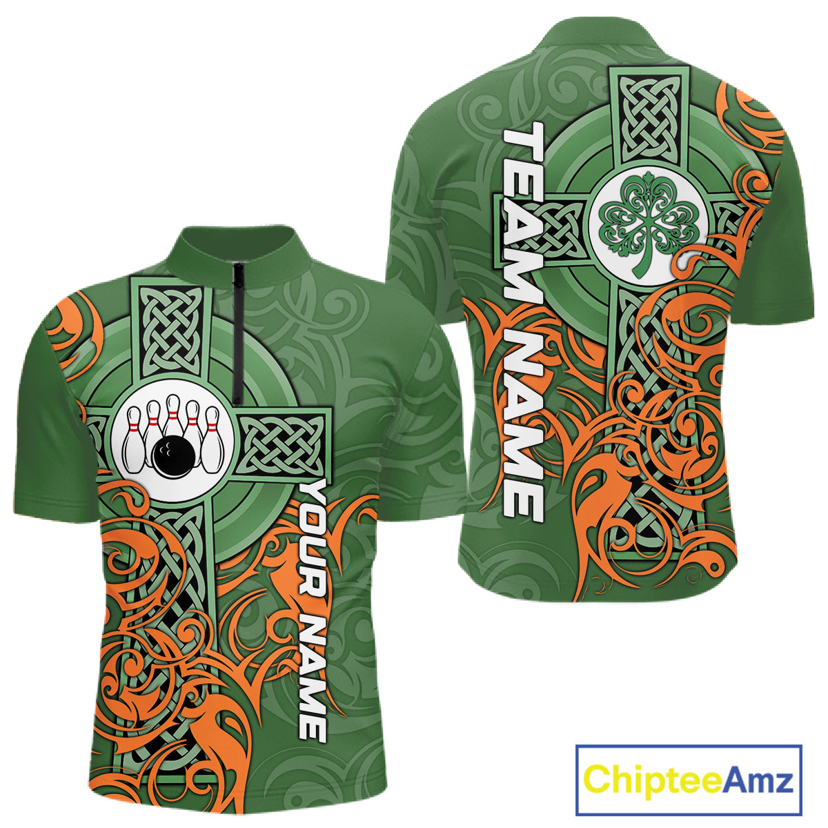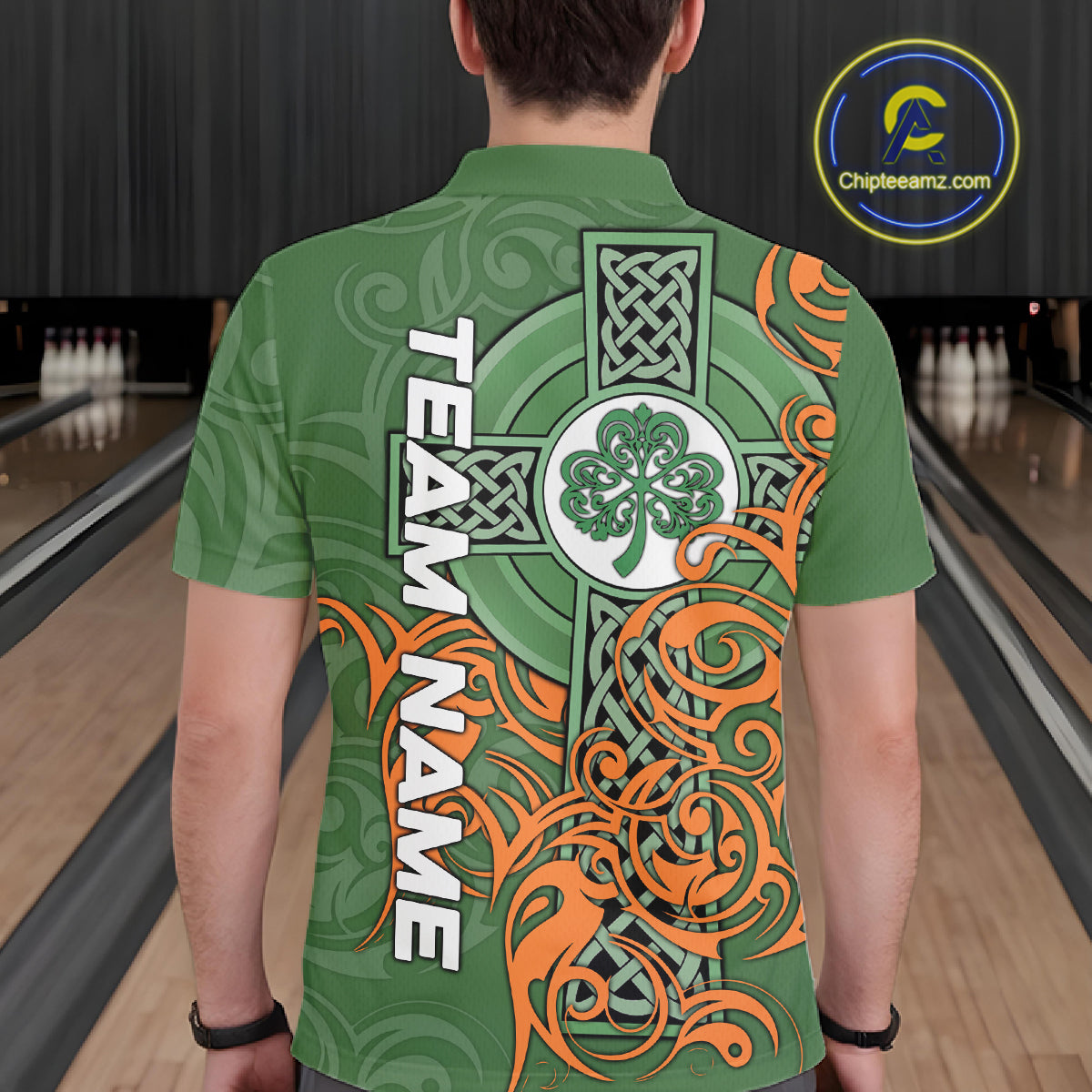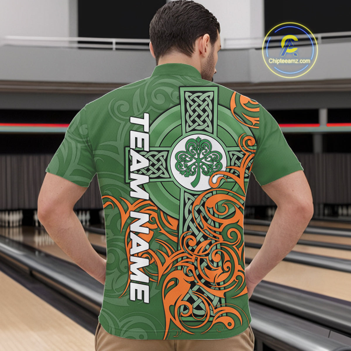 Green and orange Irish Tribal Cross St Patrick's Day Mens bowling shirts Custom Lucky Bowling Jerseys NQS11255