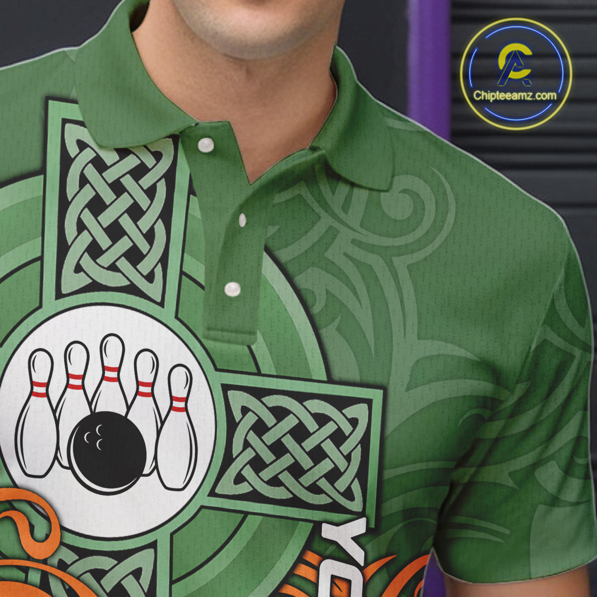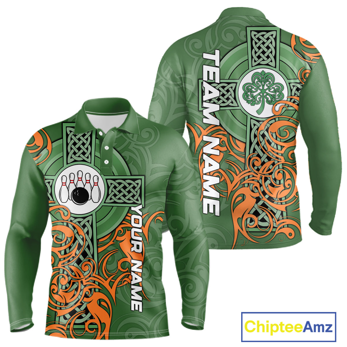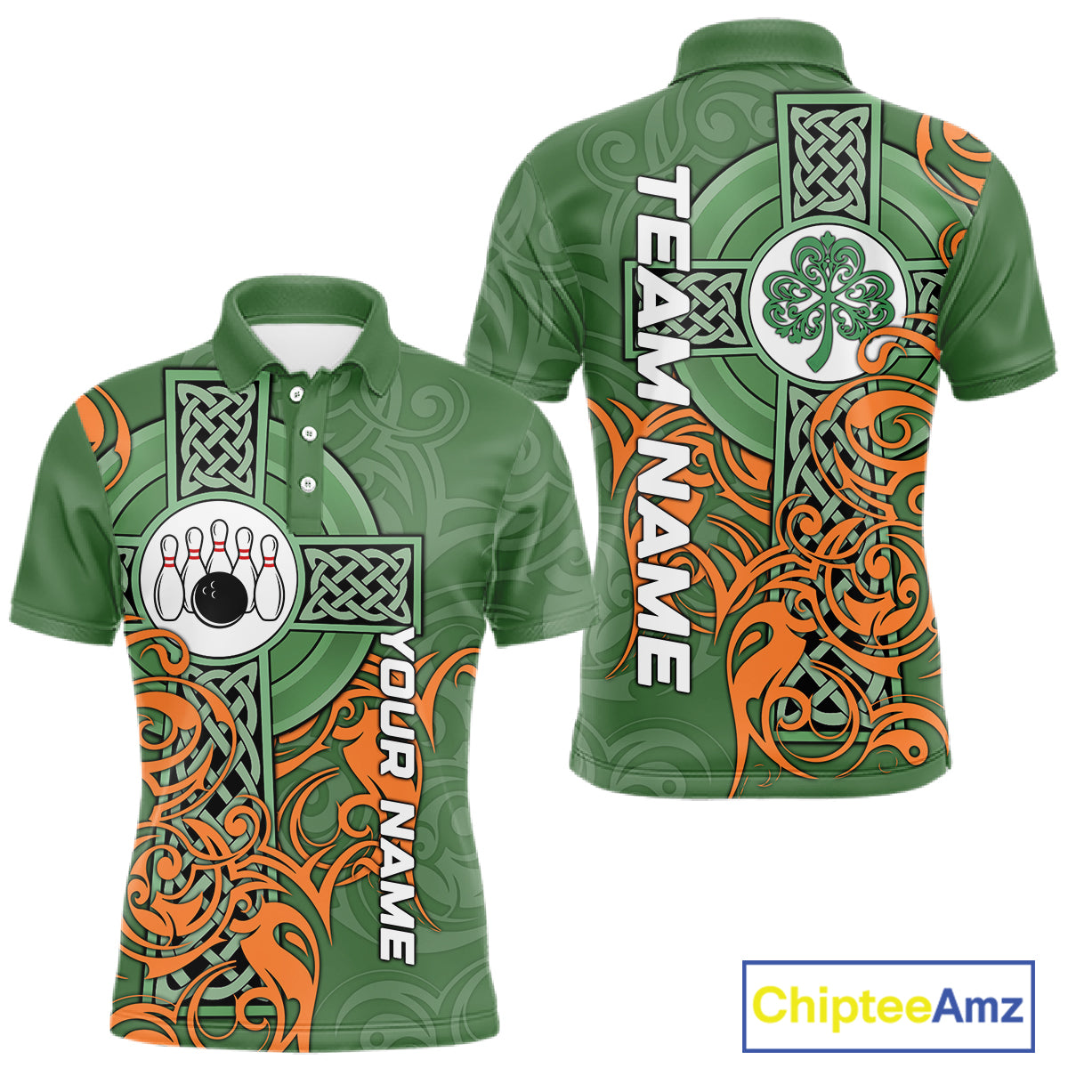 Green and orange Irish Tribal Cross St Patrick's Day Mens bowling shirts Custom Lucky Bowling Jerseys NQS11255