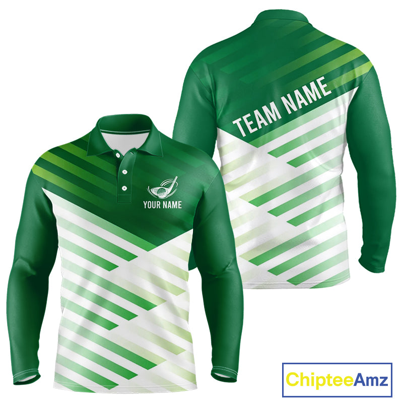 Green And White Long Sleeve Golf Polo Shirt Custom Name Golf Shirts For Team Personalized Golf Gifts NHN0097