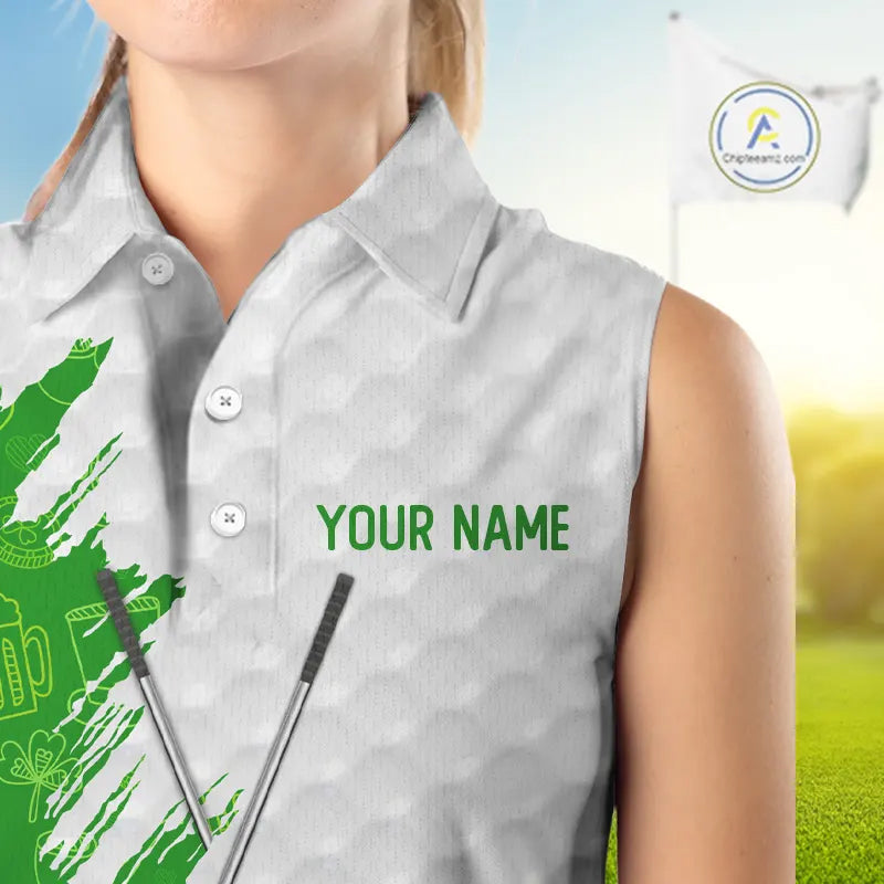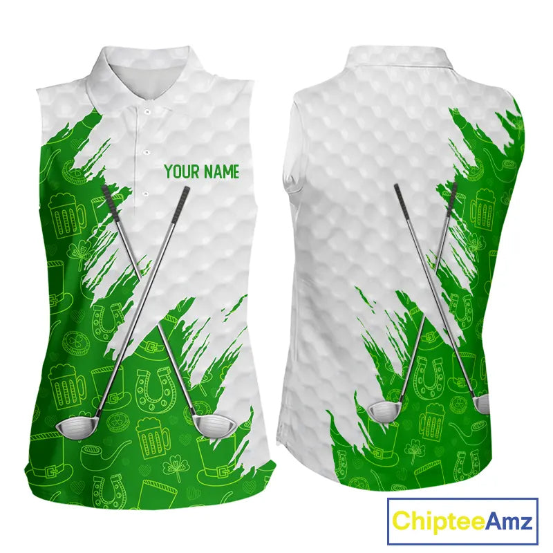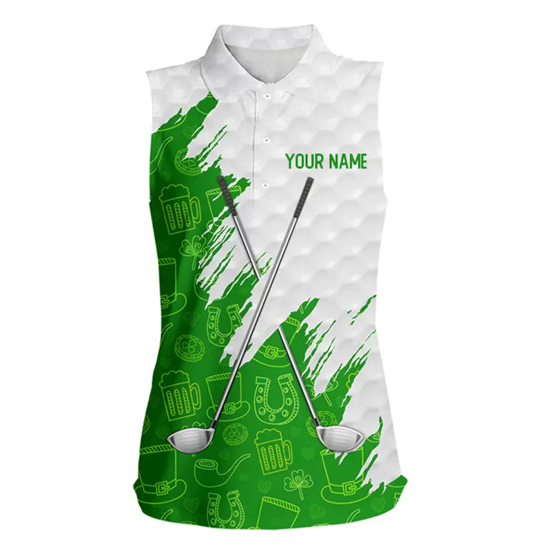 Green and White St Patrick's day pattern custom Women Sleeveless polos, team golf attire for ladies NQS11422