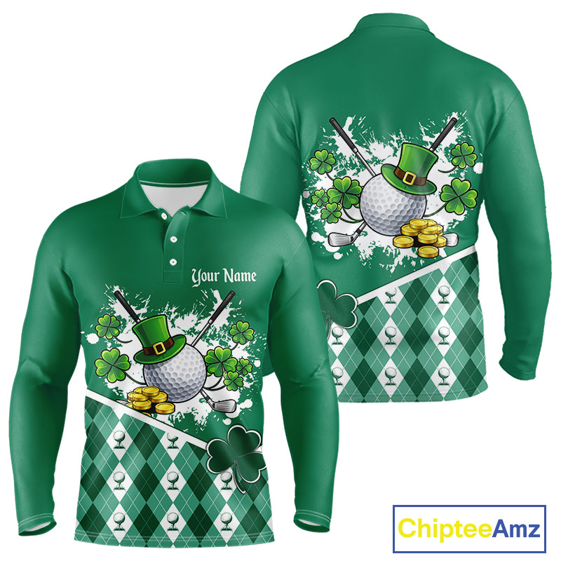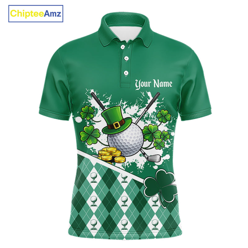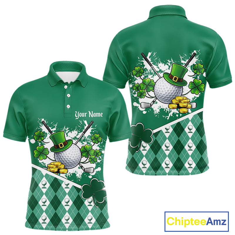 Green argyle pattern St Patrick Golf Polo Golf shirts for Men Custom gifts for the golfer NQS11476