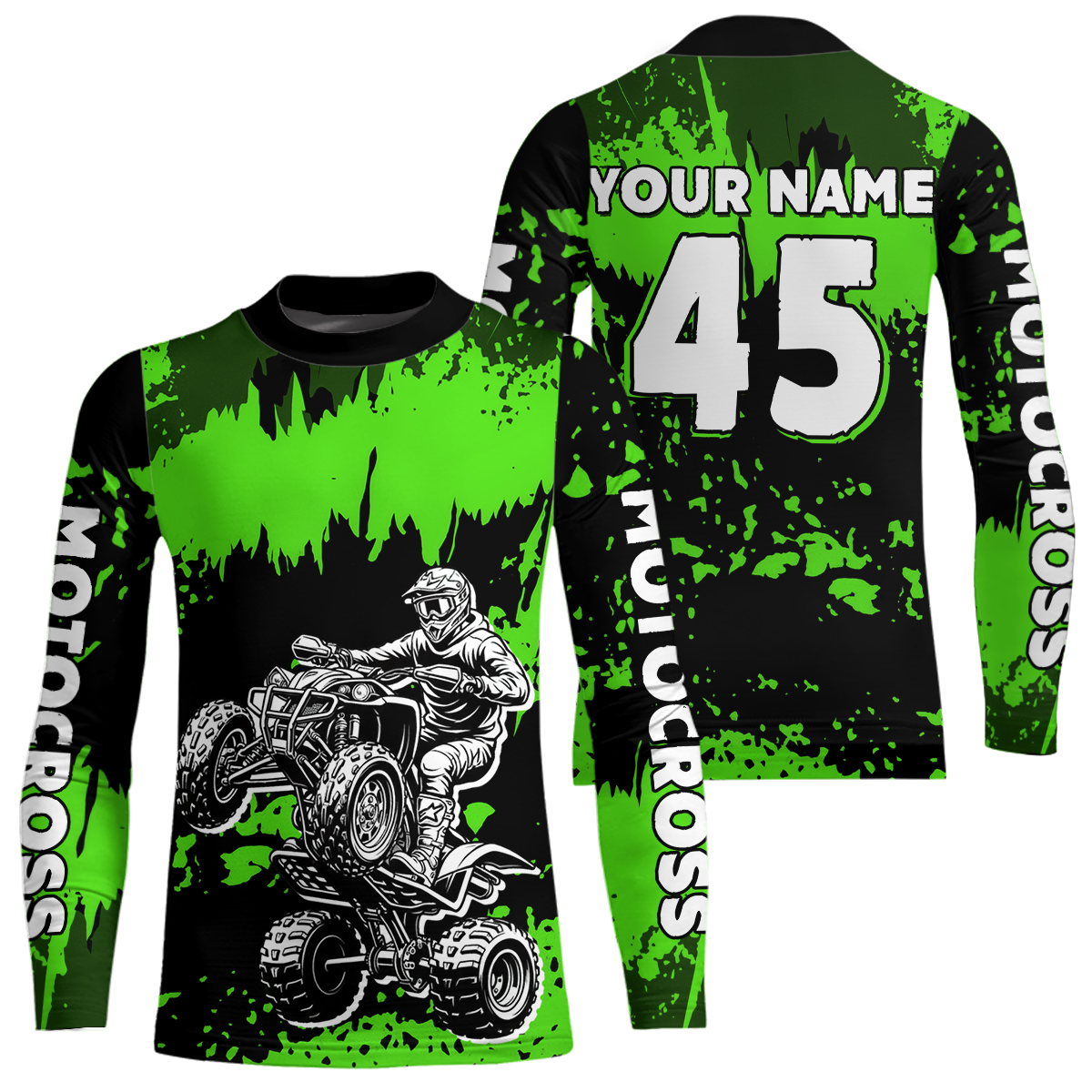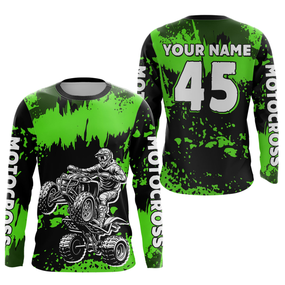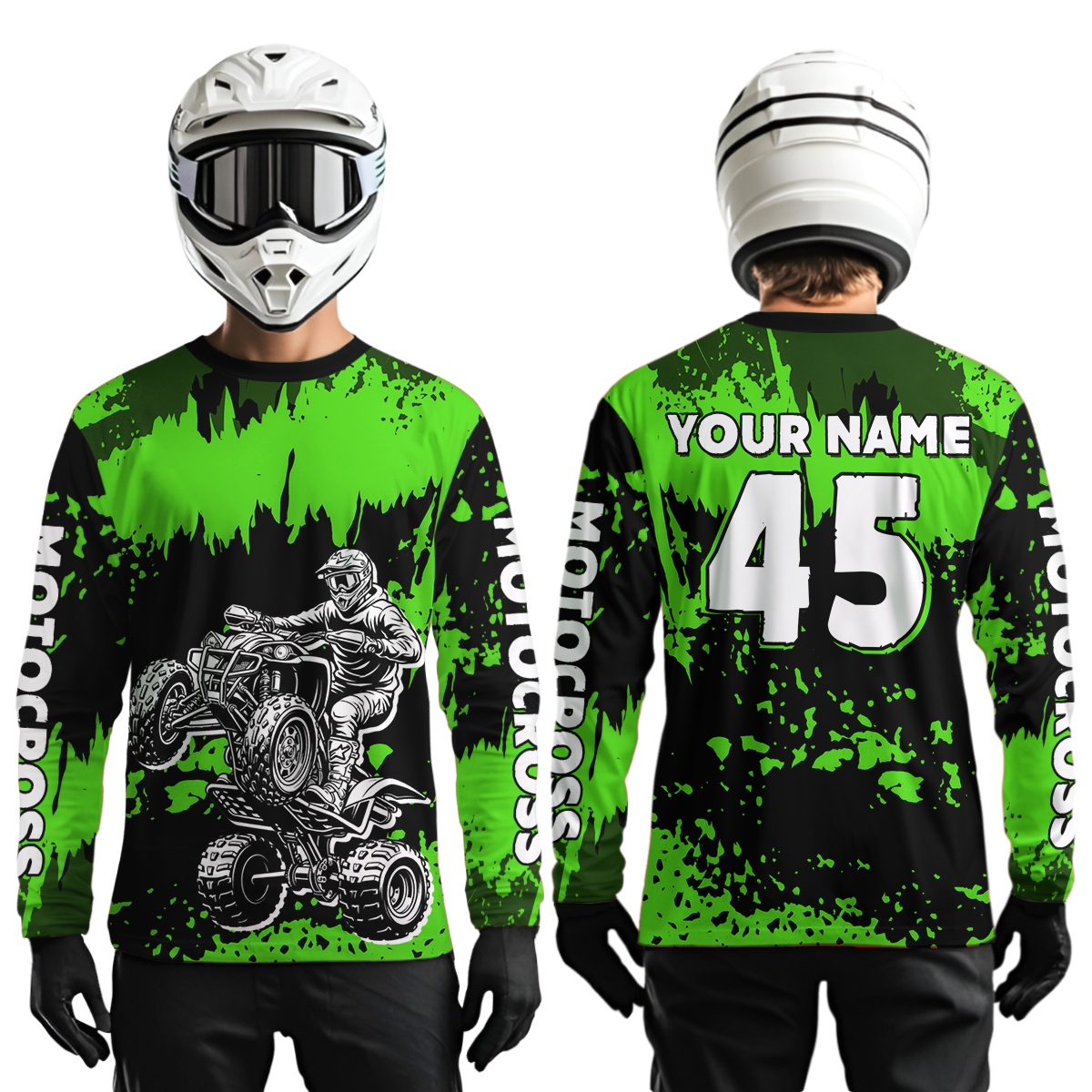Green ATV Motocross Jersey Kid Adult Custom Quad Bike Jersey Off-Road Shirt UPF30+ DNT59