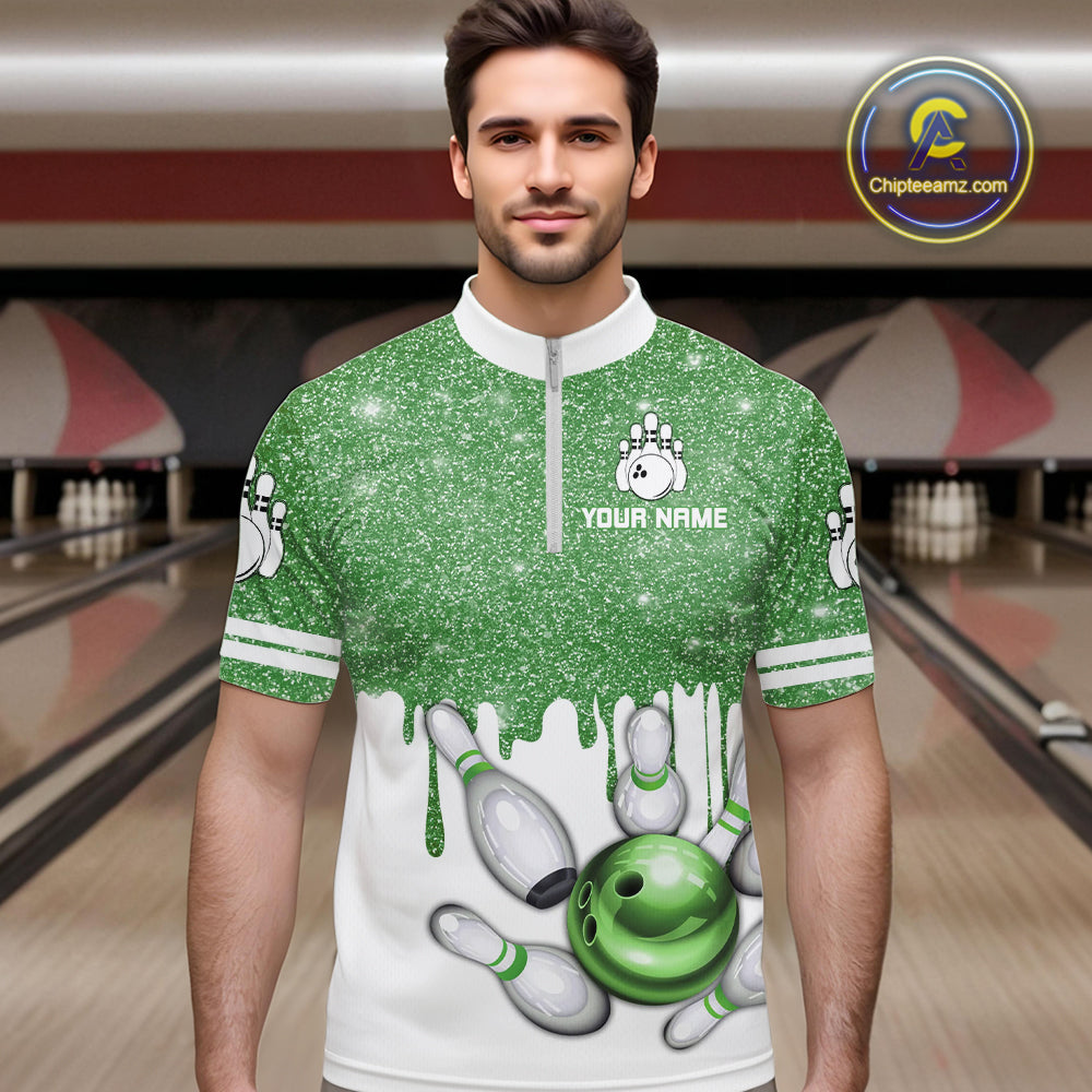 Green glitter Bowling Shirts For Men Custom team bowling jerseys, Personalized bowling uniform NQS10814