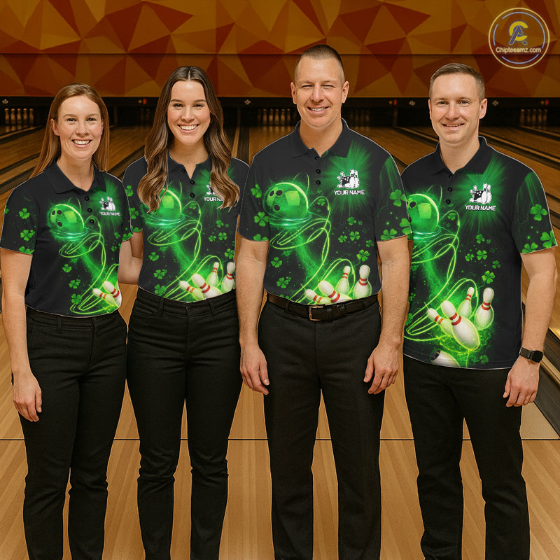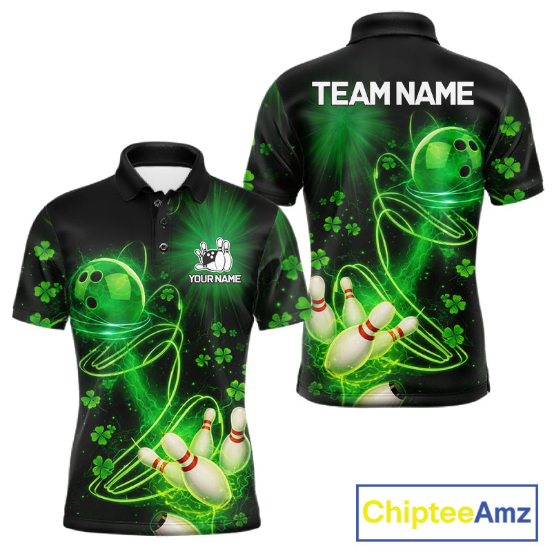 Green shamrock lightning thunder St Patrick's Day bowling shirts for men custom team bowling jerseys NQS11414