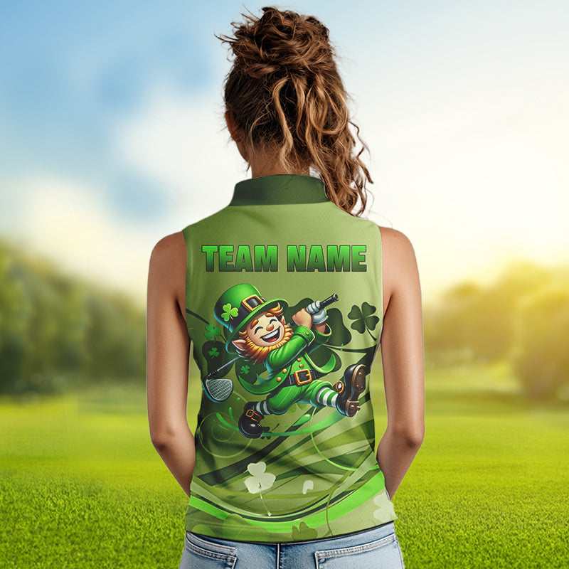 Green shamrock Lucky Golf Sleeveless Polo Shirts For Women Custom St Patrick Day Team Golf Shirts NQS9470