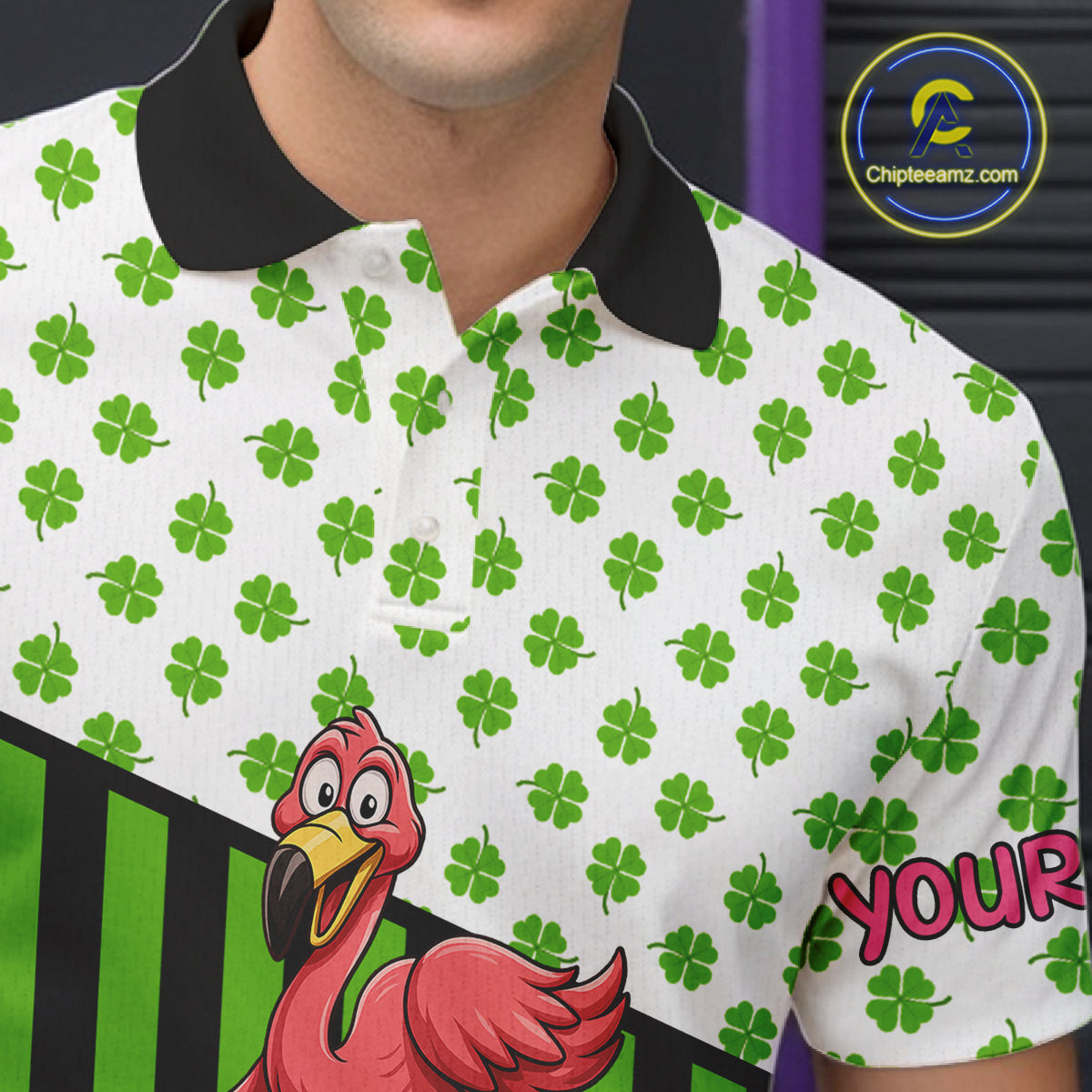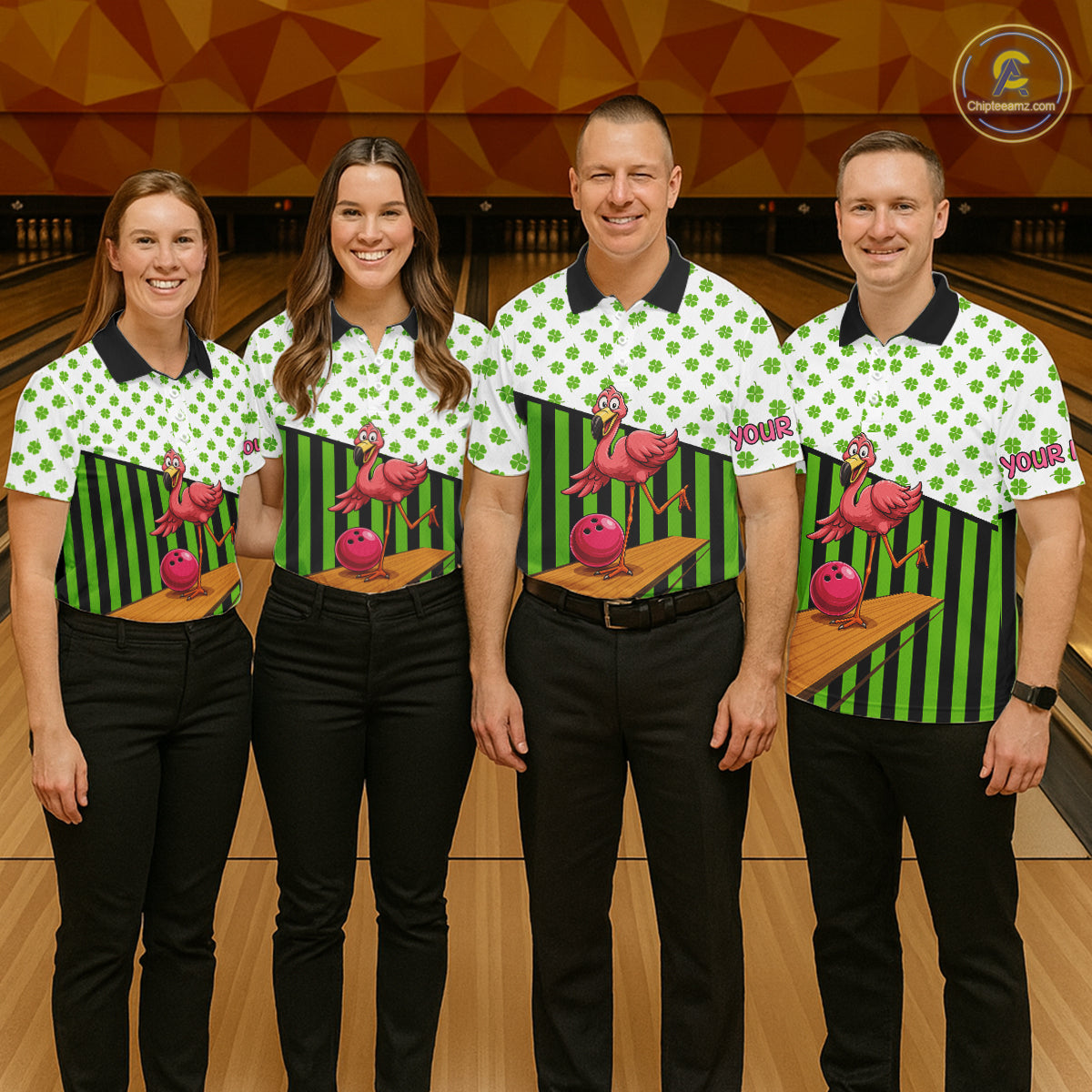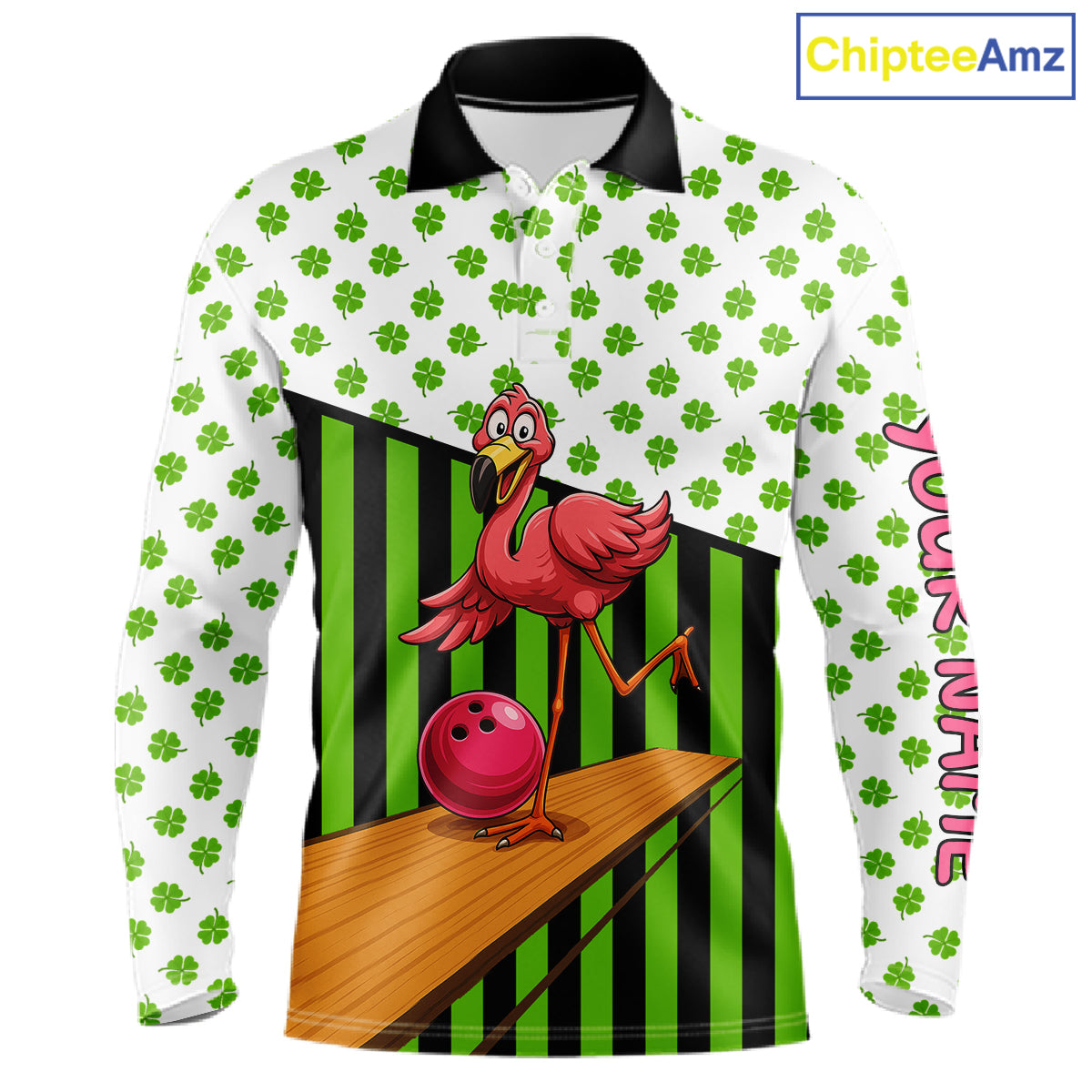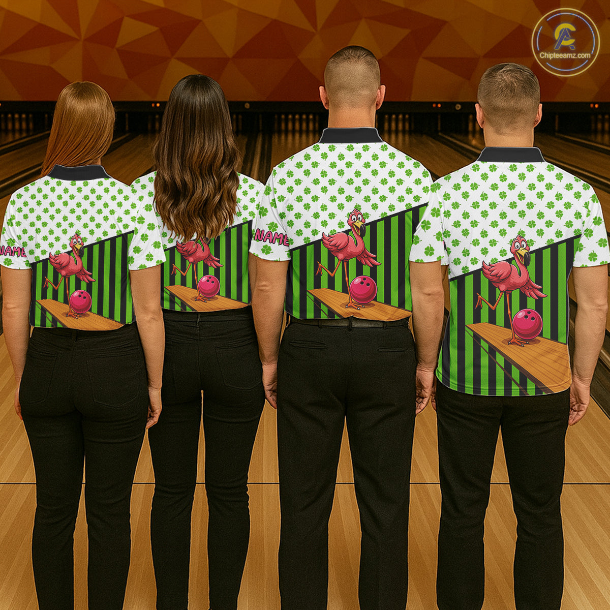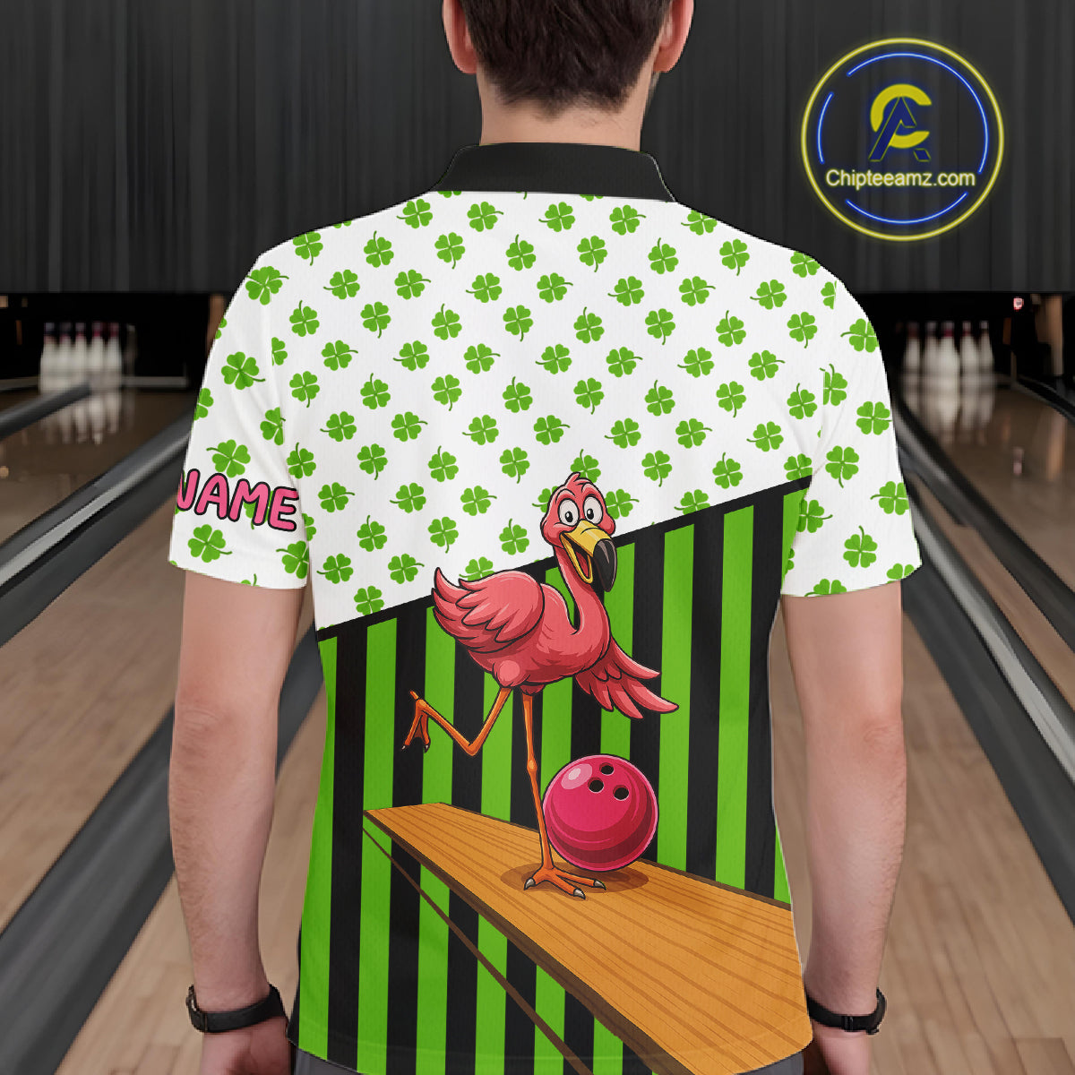 Green shamrock pattern flamingo Bowling shirts for Men Custom St Patrick's Day Team bowling outfit NQS11247