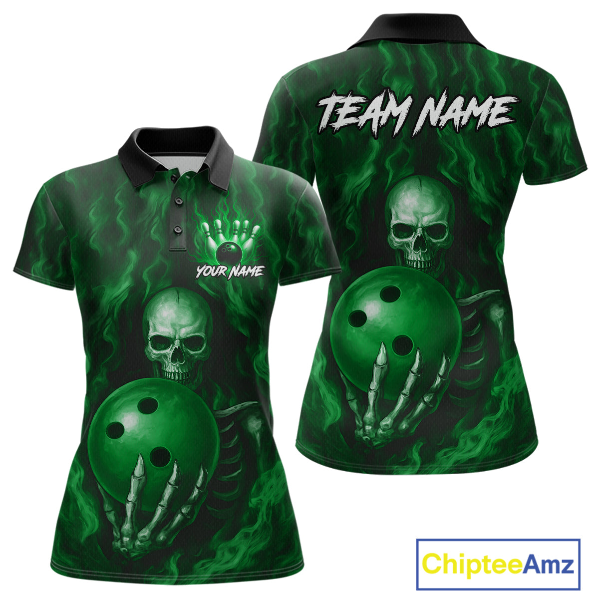 Green Skull Bowling Shirts for Team Men Women Custom Bowling Jerseys for Bowlers MBL206