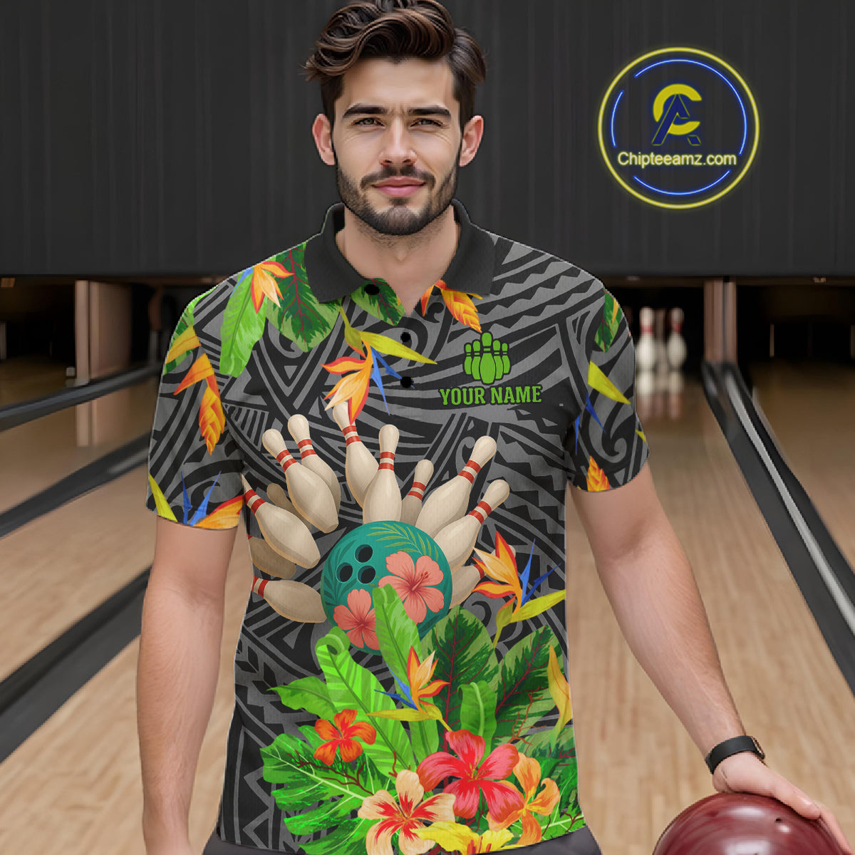 Green tropical flower tribal pattern Bowling Shirts For Men Custom Bowling Team Jersey Bowlers Outfit NQS11005