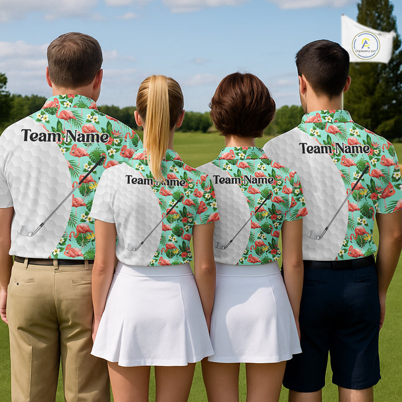 Custom Womens Golf Polo Shirt, Green Tropical Pink Flamingo Pattern Personalized Ladies Golf Top NHN0023