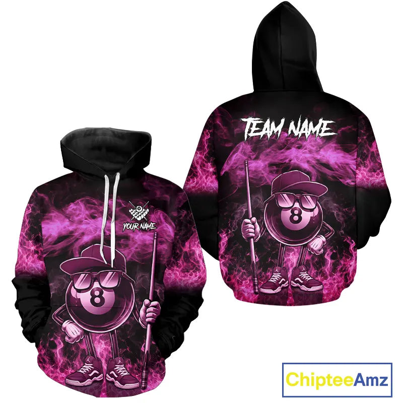 Pink Funny 8 Ball Pool Flame Smoke Billiard Hoodie For Men And Women Custom 8 Ball Hoodie Jersey TDM5693